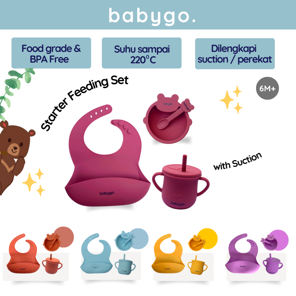 BabyGO SET Mangkok Celemek Silikon Bayi / Silicone Bowl Baby Bib Cup / Gelas Bayi / Slaber Silikon Anak Set MPASI
