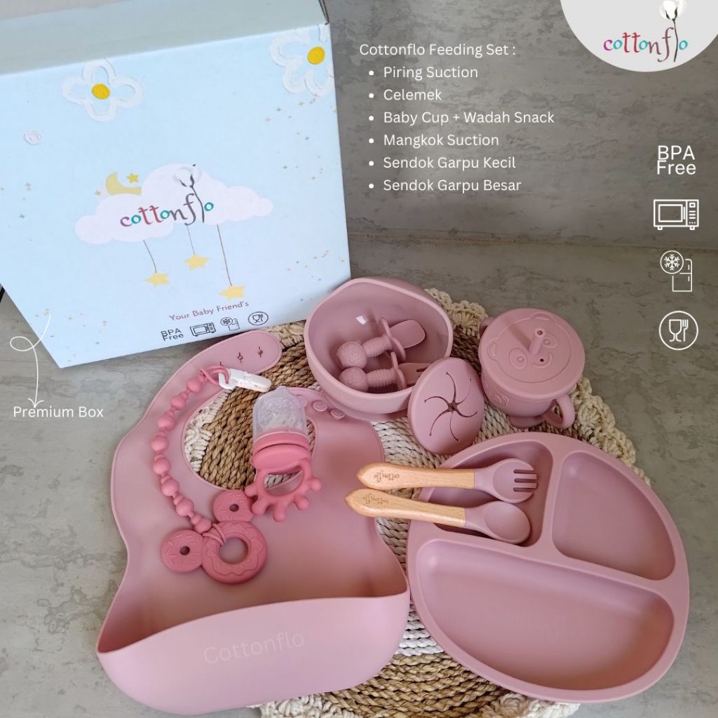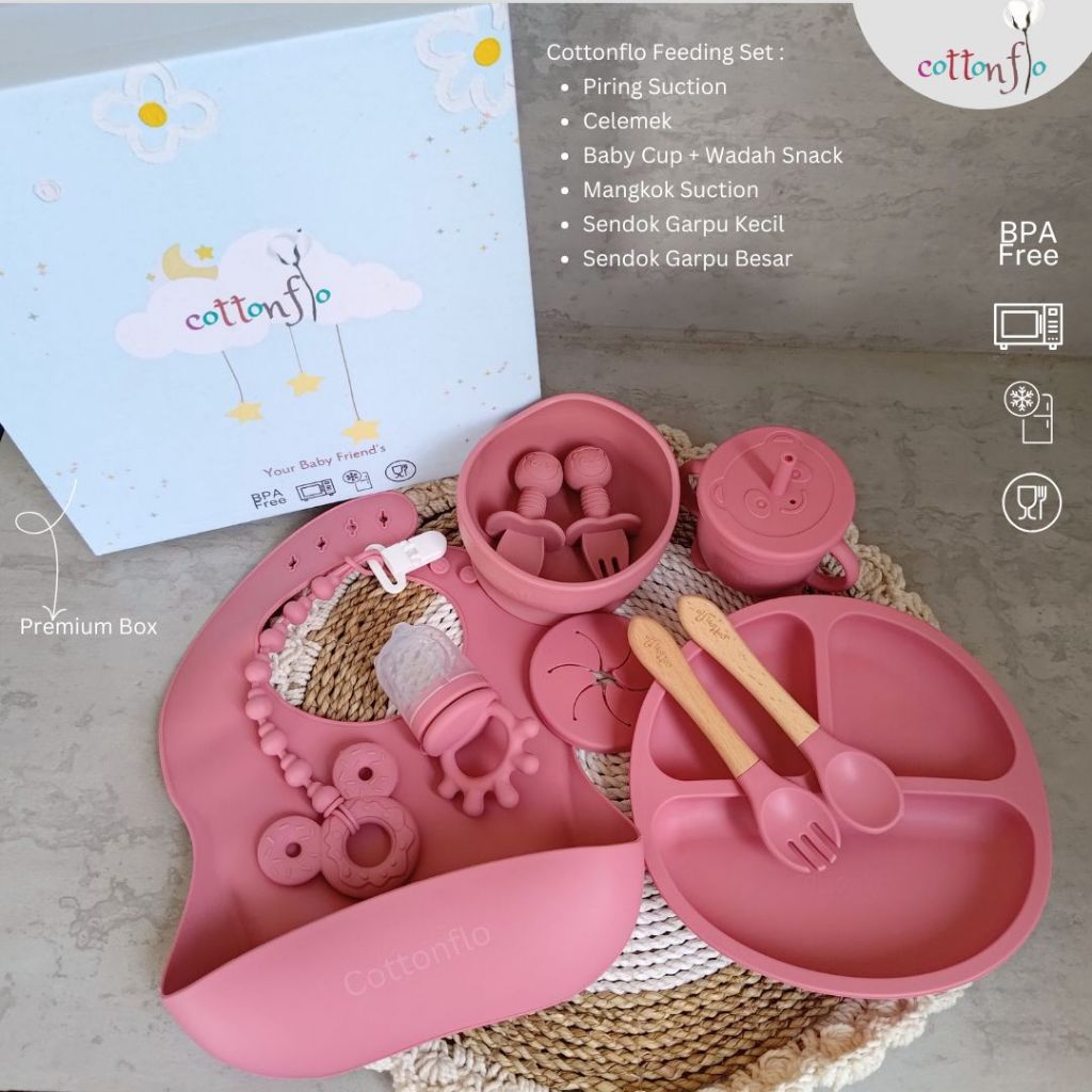 Cottonflo Silicone Meal Set | Set Perlengkapan Makan Bayi & Balita | Alat makan bayi