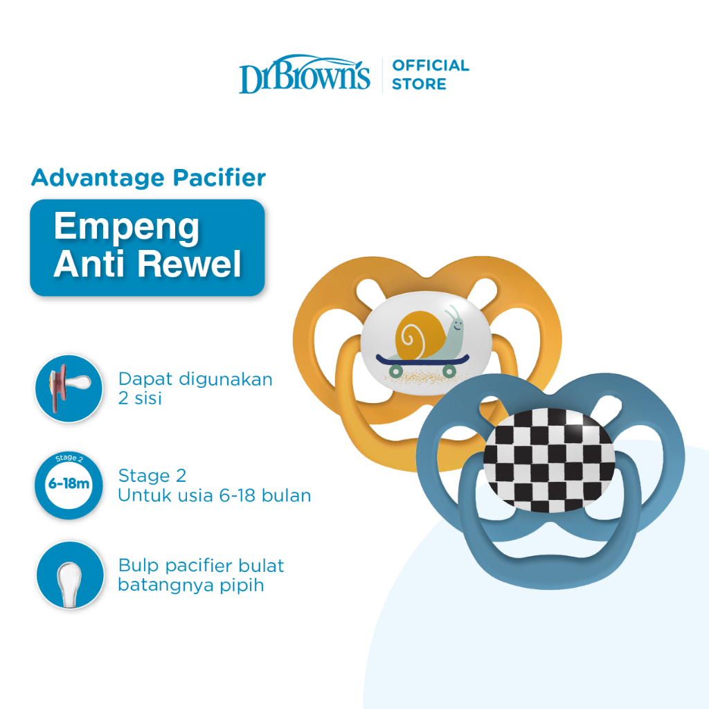 Dr.Brown's Advantage Pacifier Assorted, 2-Pack / Pacifier / Empeng Bayi