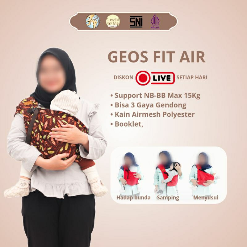 Gendongan CuddleMe GeosFit Air Gendongan Samping Bayi Instan Sling geos fit solid motif