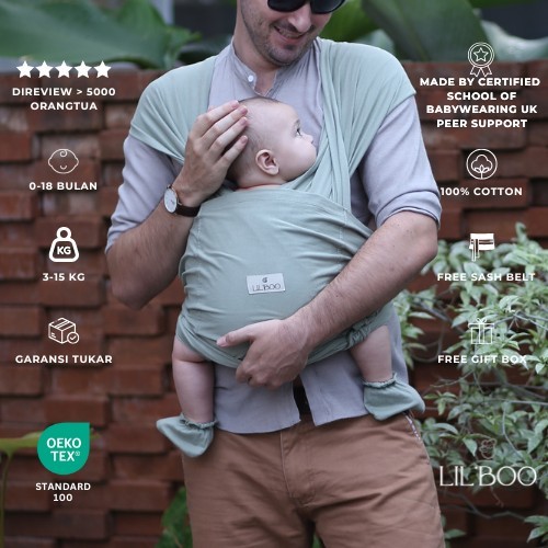 LIL’ BOO Gendongan Bayi Instan M-Shape 0–15kg Tosca | Baby Wrap Newborn + Gift Box + Sash Belt