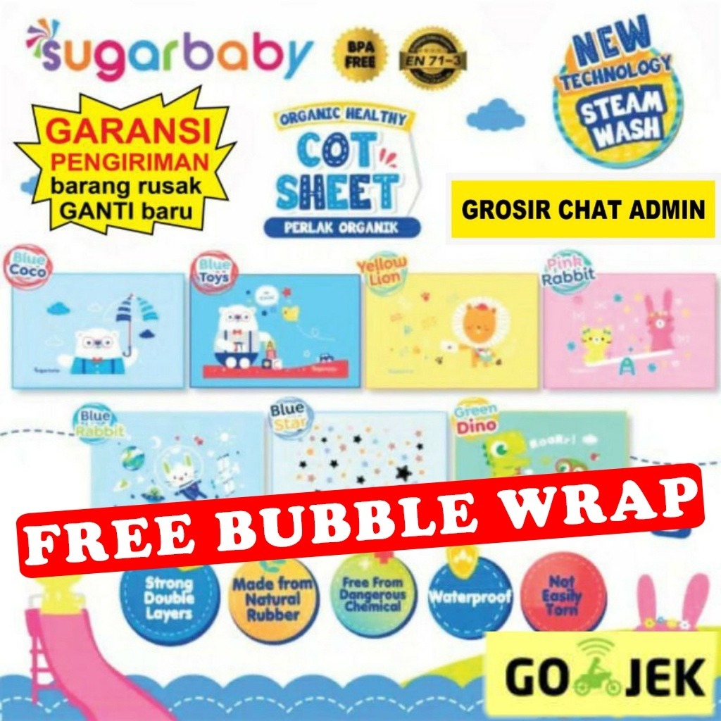 Perlak Bayi Sugar Baby , Perlak Karet Waterproof Bayi Untuk Ompol , SugarBaby Perlak , Alas Ompol Smartstart Organic Healthy Premium
