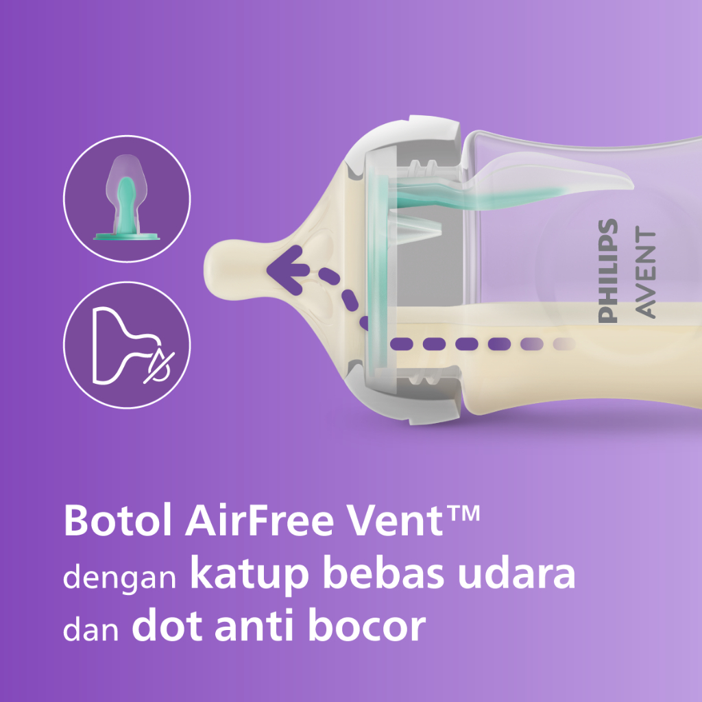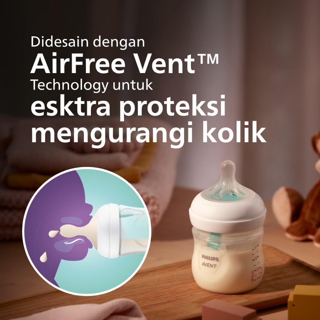 Philips Avent | Botol Susu Bayi | AirFree Vent Natural Response | Dot Seperti Payudara Ibu & Ekstra Anti Kolik | 125 ml | Single | SCY670/01