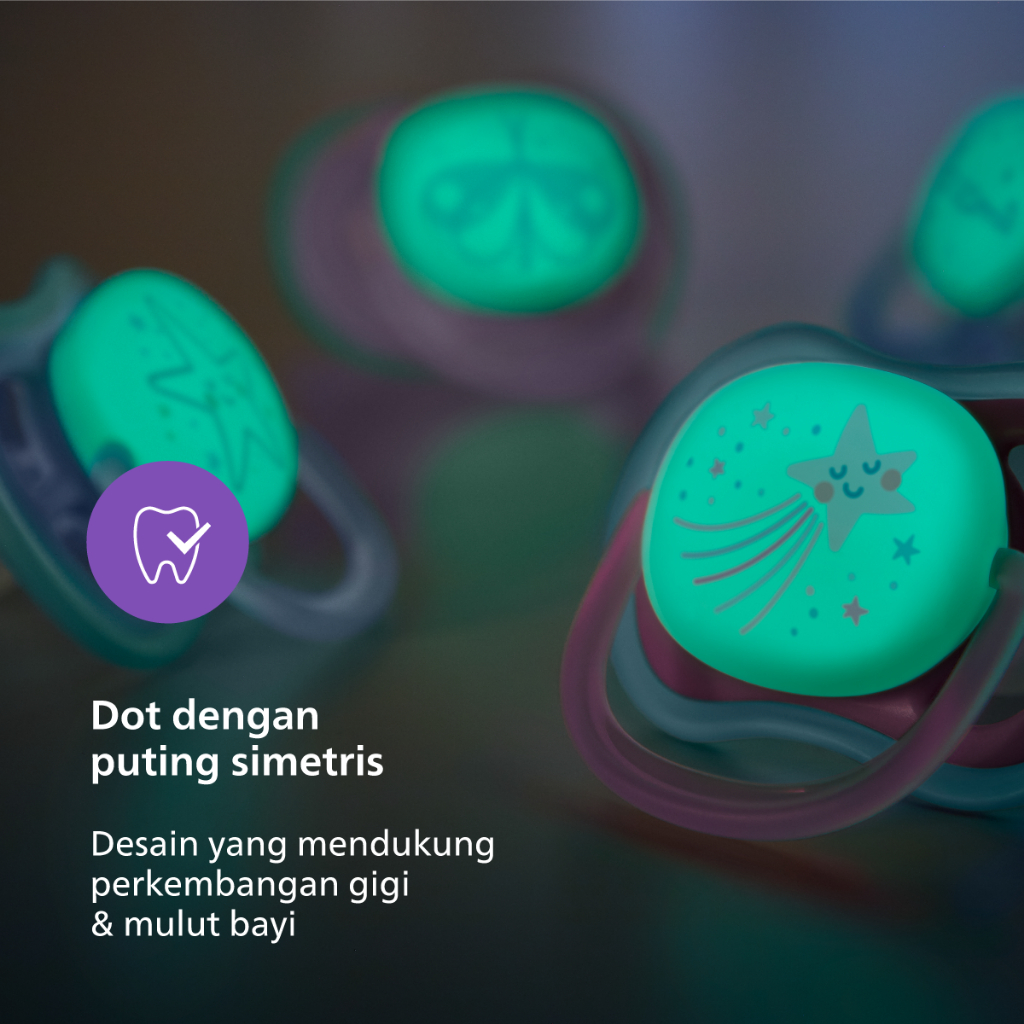 Philips Avent | Empeng Bayi / Soother Bayi | Ultra Air Glow In The Dark | Empeng dengan Ekstra Ventilasi | Character | 6-18M | SCF376/14