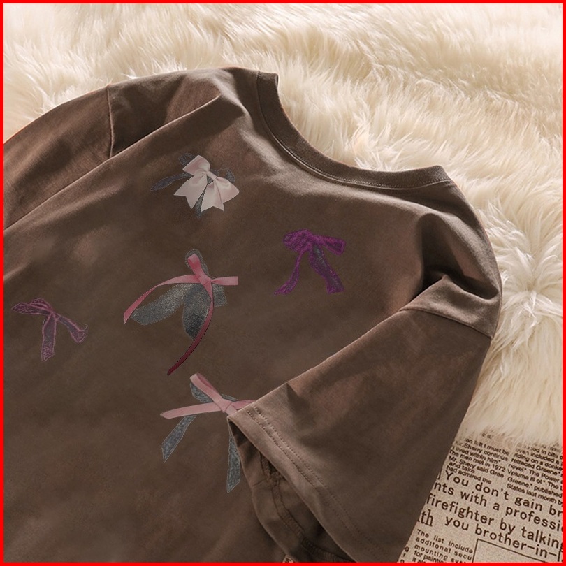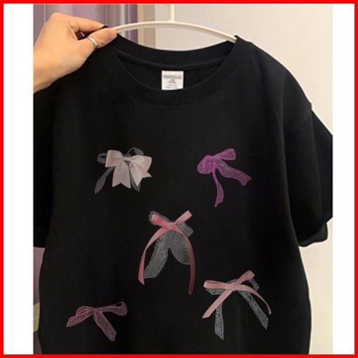 Yesgirl Cetakan Busur Berwarna-warni Cotton Atasan Kaos Kaos Lucu Wanitat-shirt Lengan Pendek Baju Kaos Oversize Wanita