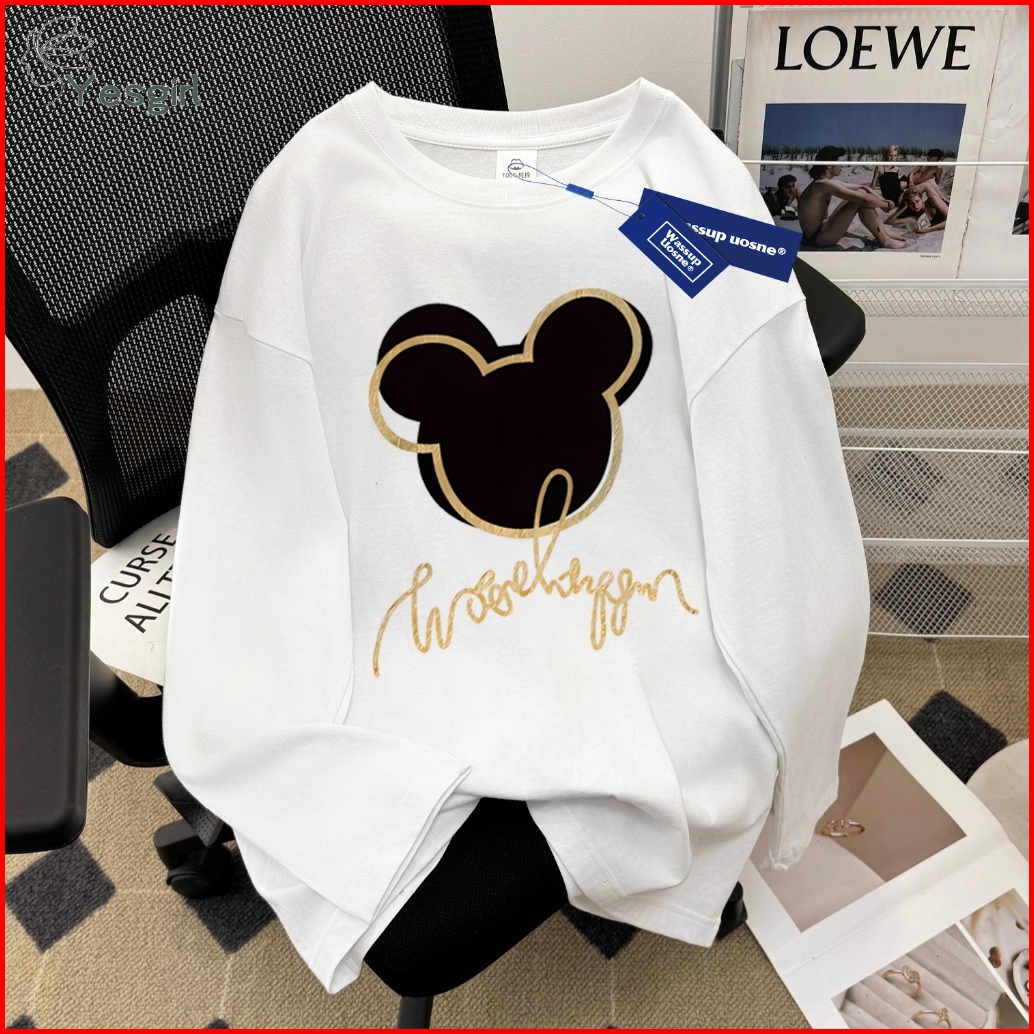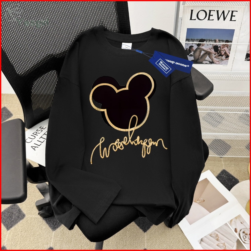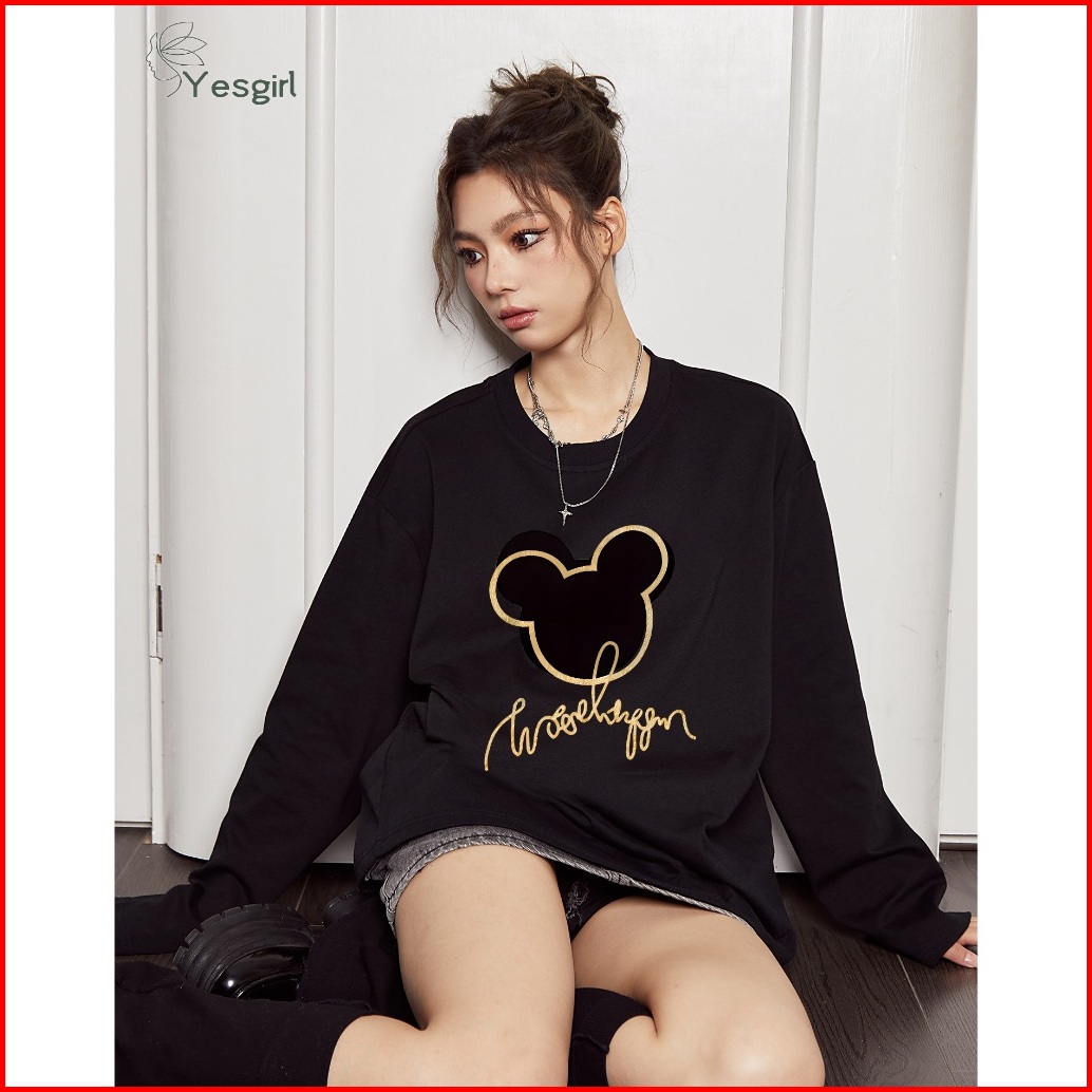 Yesgirl Korea Style Mickey Mouse Print Kaos Kasual Longgar Lengan Panjang Oversize Wanita Busana Gaya Korea Lengan Panja