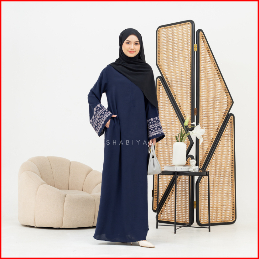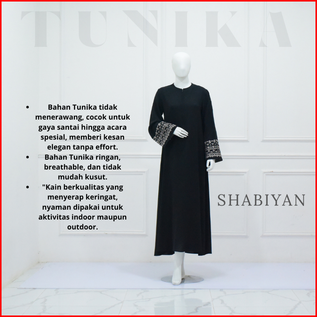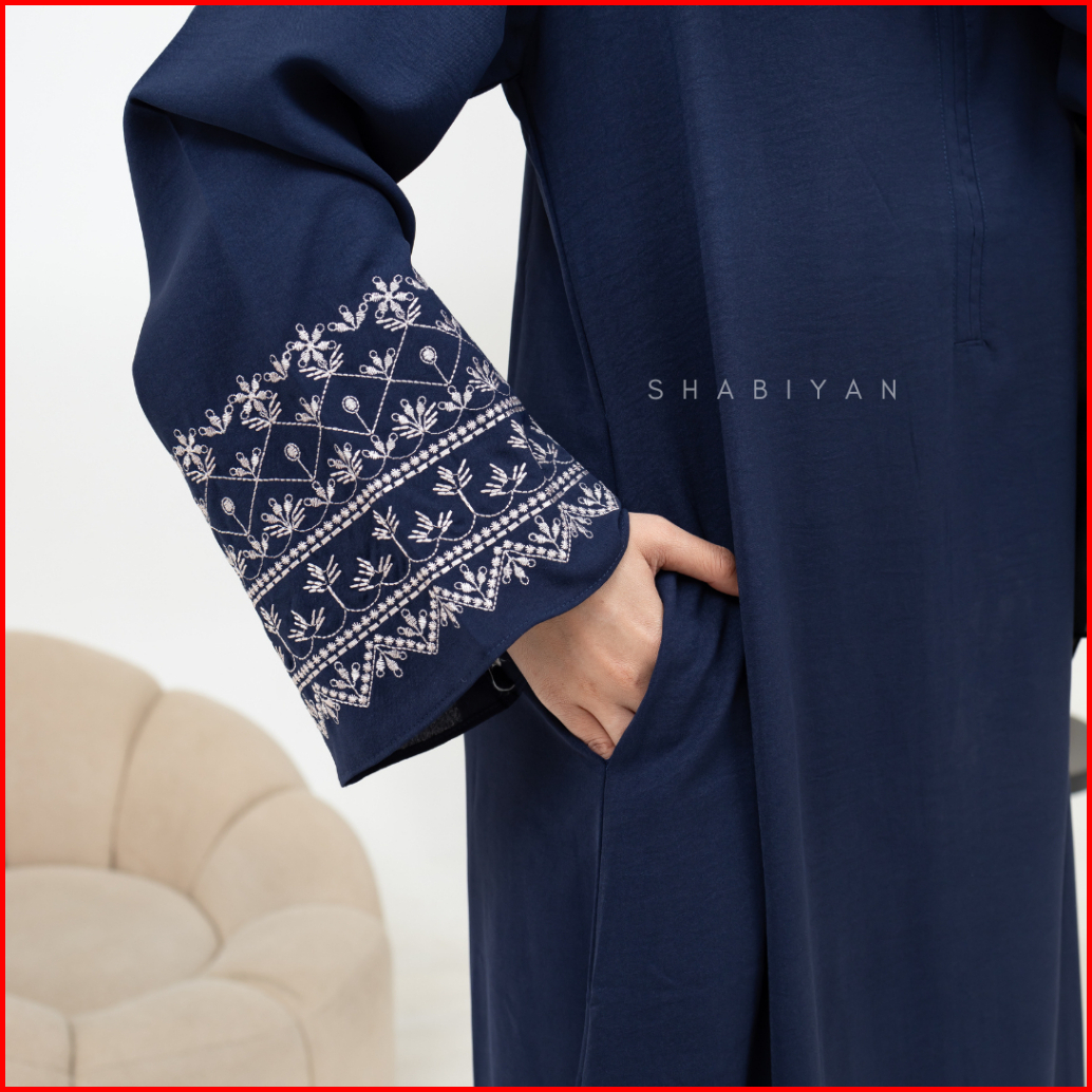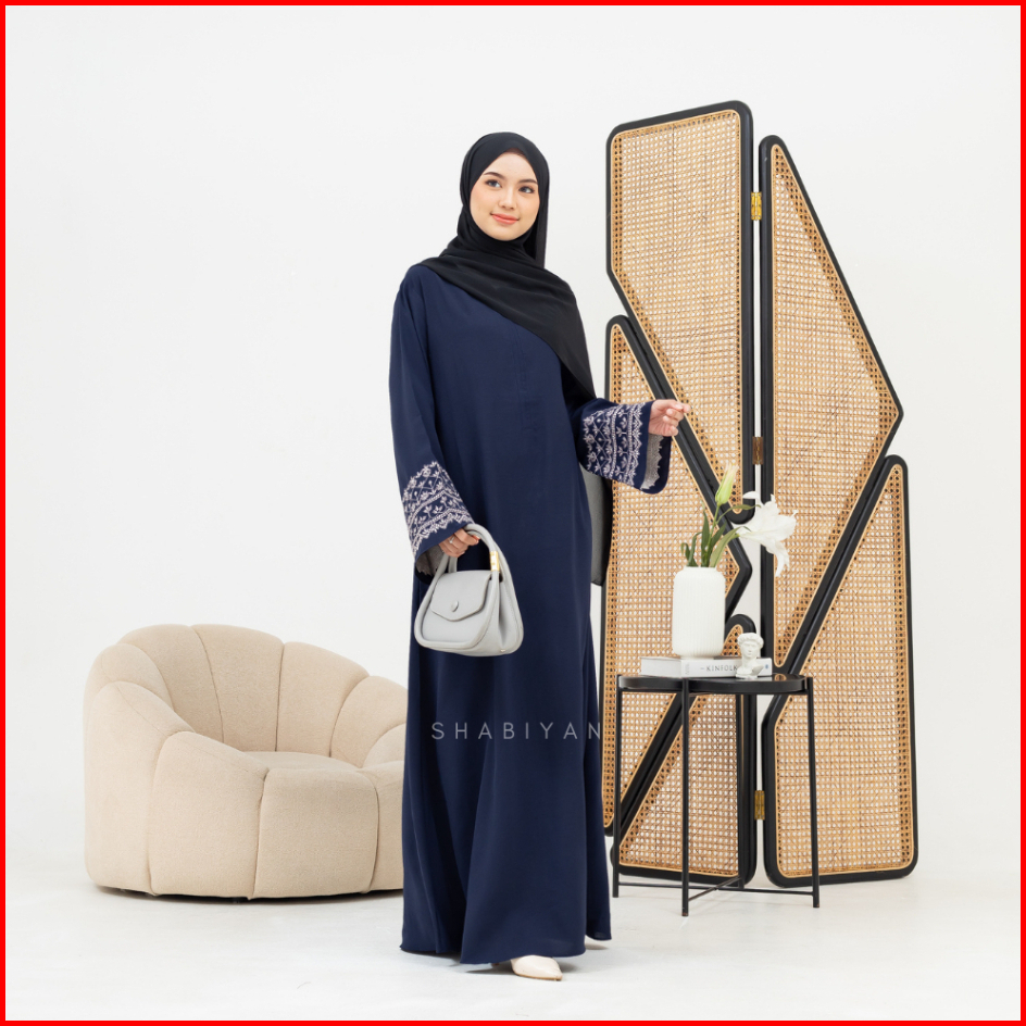 Shabiyan-620 Abaya Turkey Hitam Gamis Bordir Busui Friendly