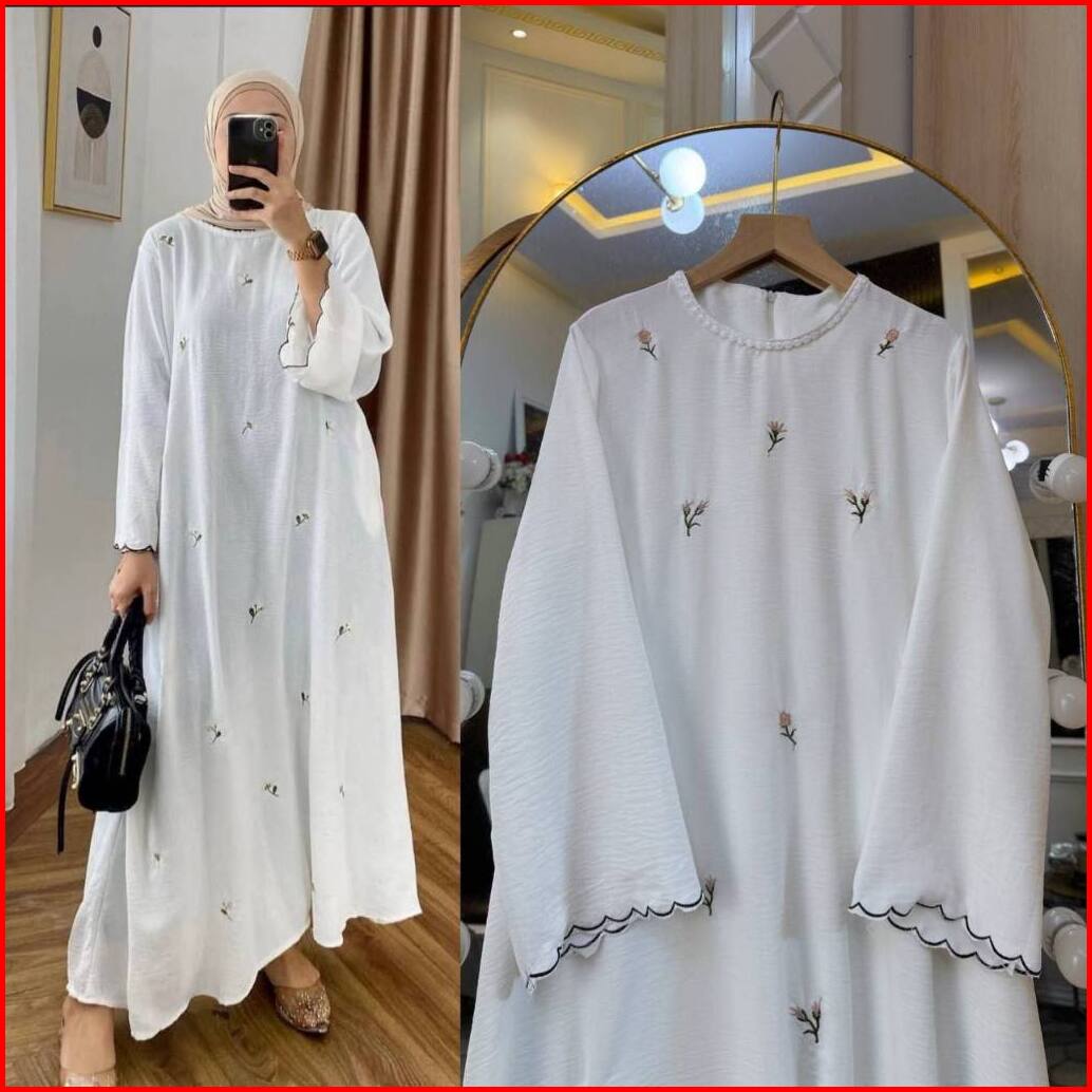 Dolbatik - Gamis Abaya Zica Dress Motif Bordir Bunga Bahan Airflow