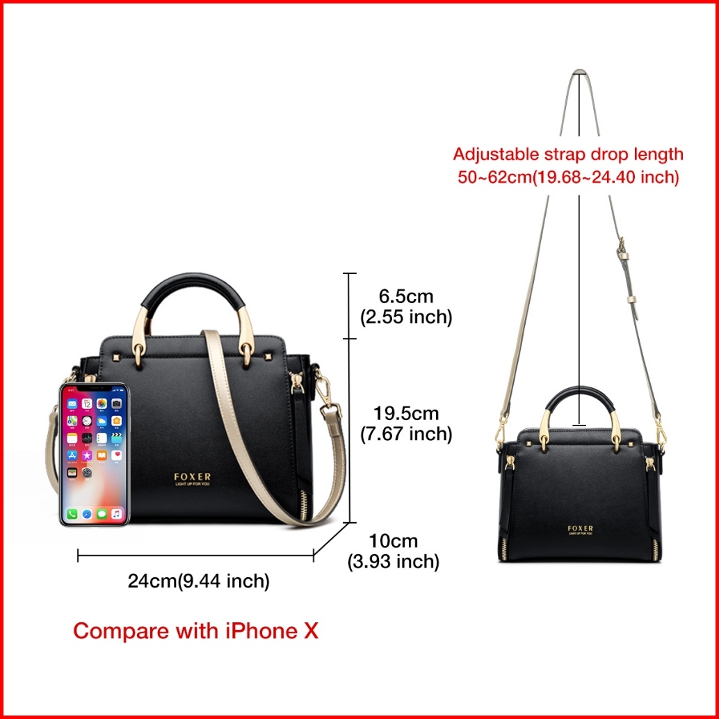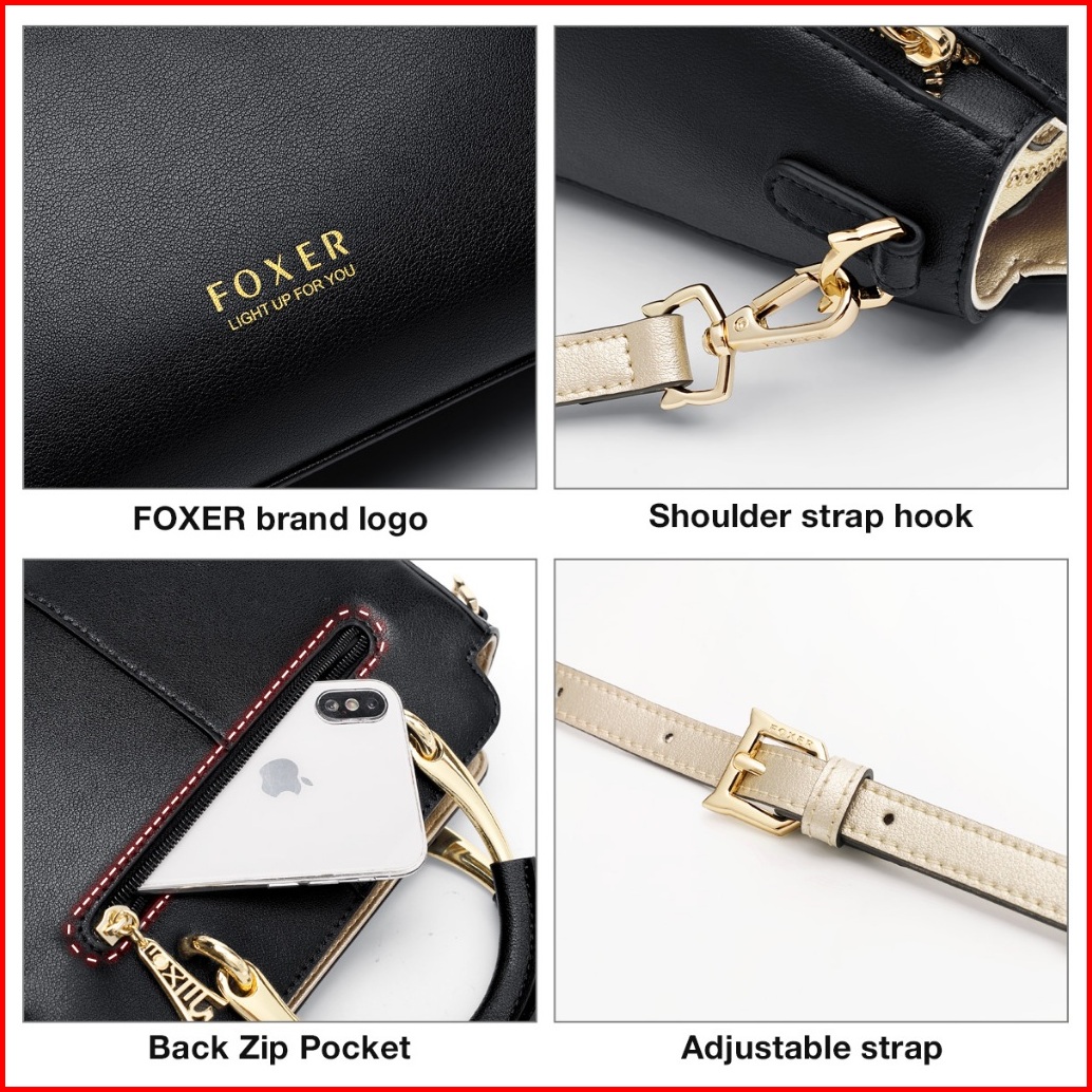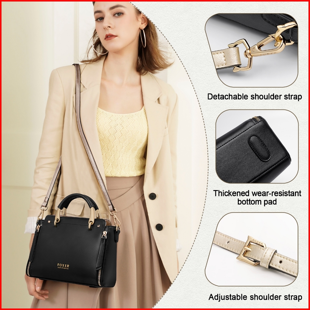 Foxer Tas Tangan Kulit Asli Tas Bahu Wanita Tas Selempang Dengan Tali Bahu Yang Dapat Disesuaikan