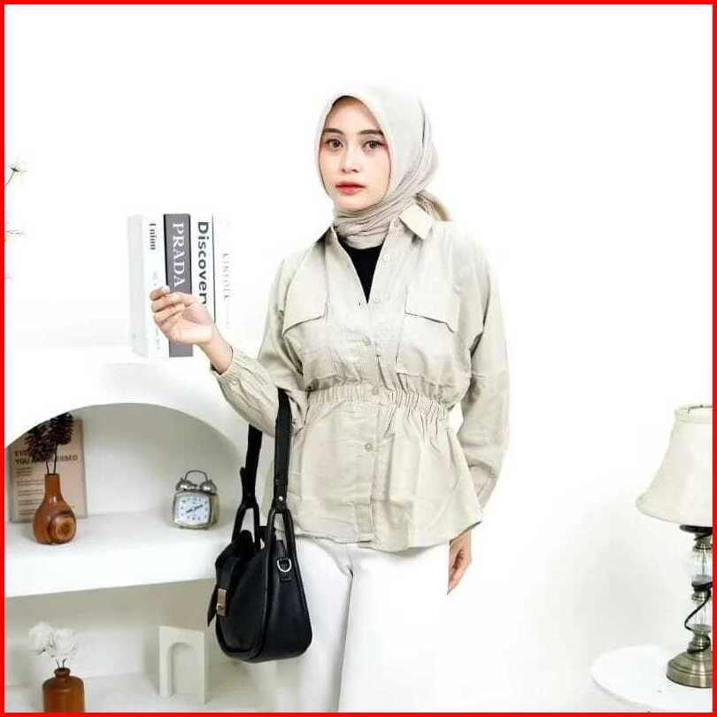 Beena Linen Shirt Top Atasan Wanita Blouse Casual Polos Terbaru