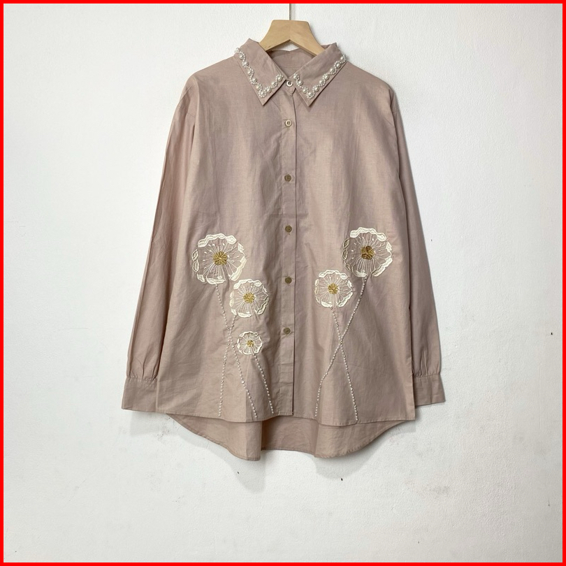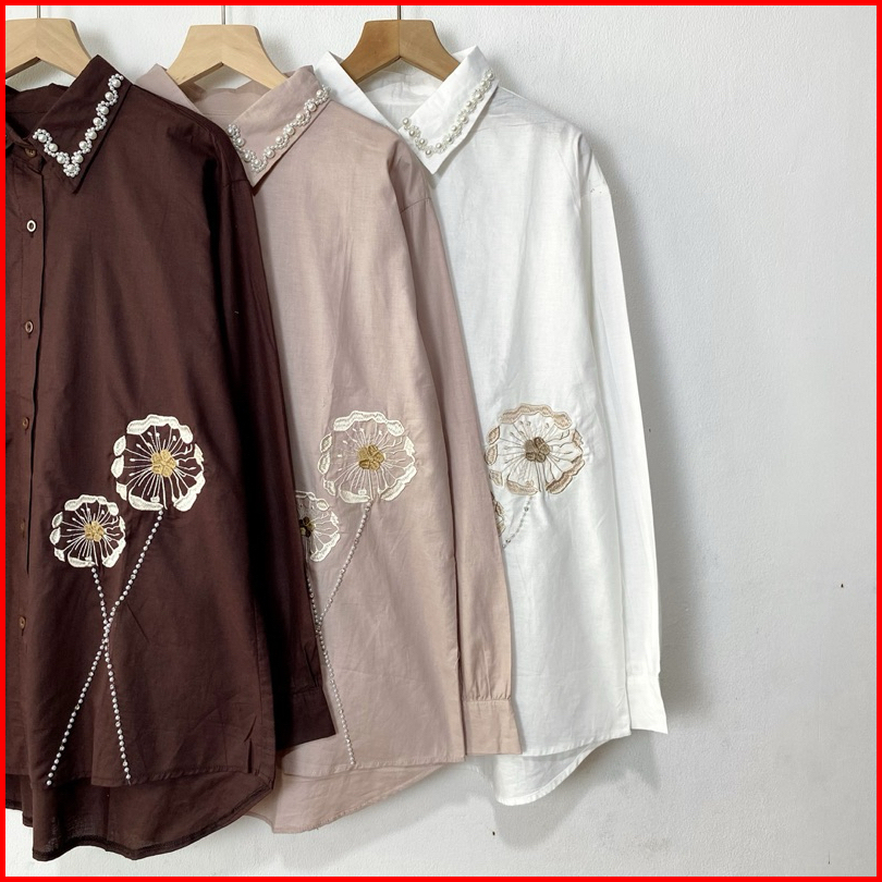 Emma Shirt Ld 110 Kemeja Bordir Blouse Atasan Wanita Payet Katun Premium