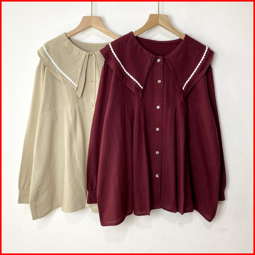 Karen Blouse Ld 115 Kemeja Polos Basic Kerah Collar Atasan Wanita Linen Premium