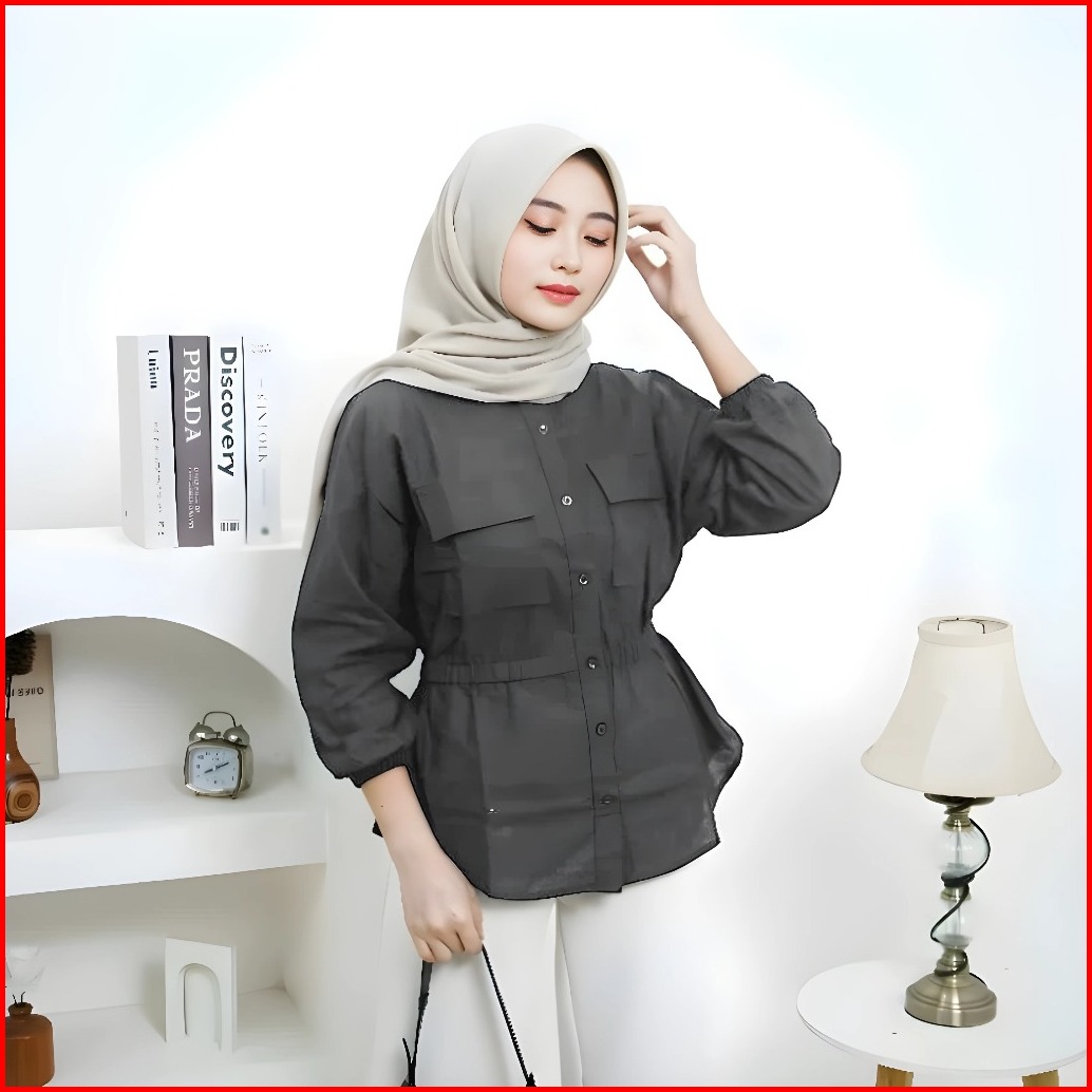 Beena Linen Shirt Top Atasan Wanita Blouse Casual Polos Terbaru