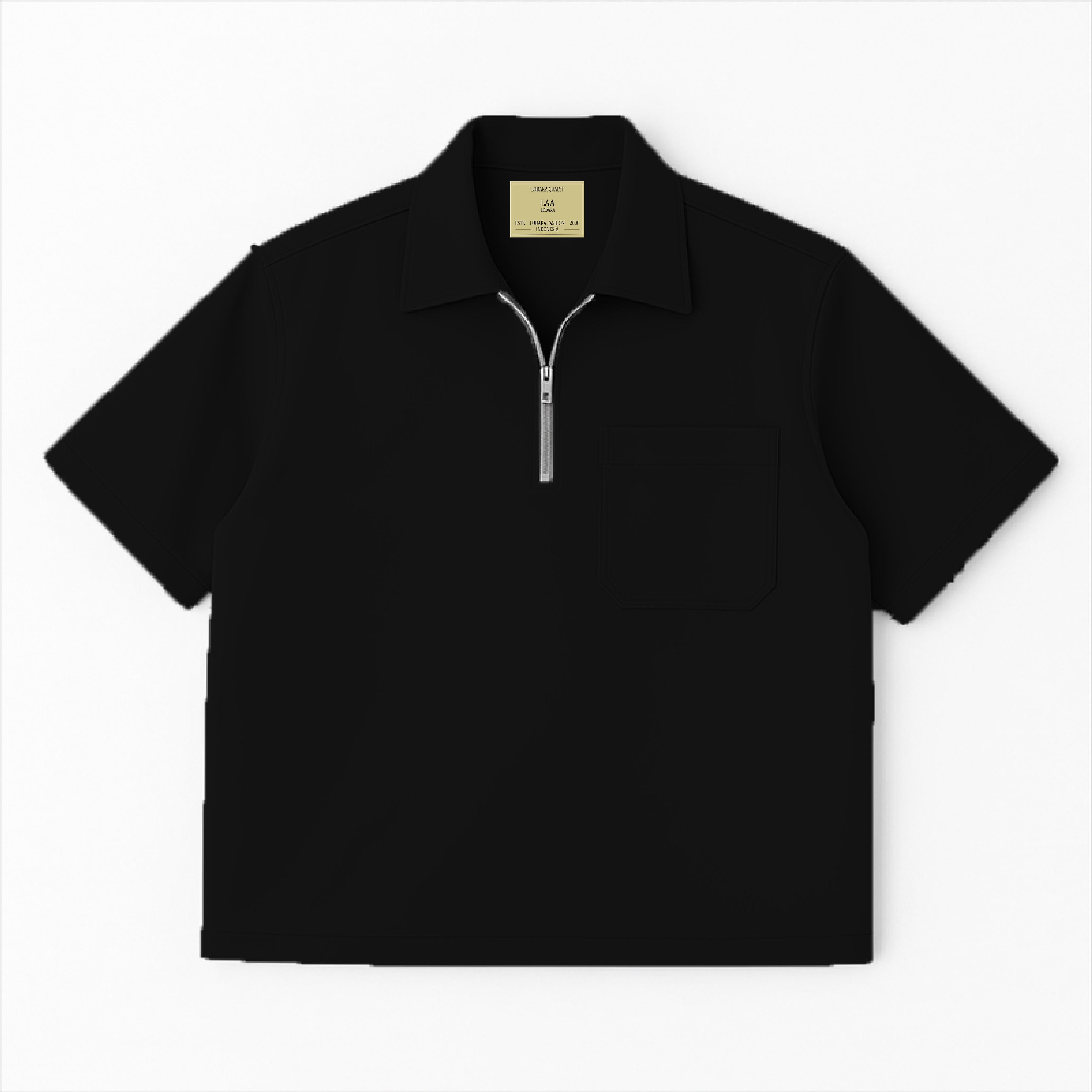 Kemeja Polo Boxy Polos Basic Pria Wanita Lengan Pendek Zipper Hitam Hijau Tua dengan Saku Depan Formal Bahan America
