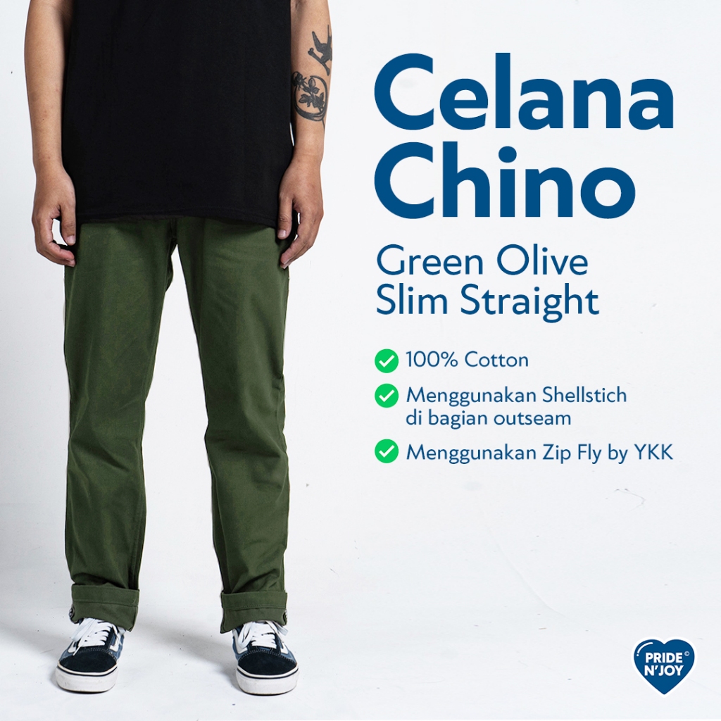Pride N Joy - Celana Panjang Chino Green O Army Twill Slim Straight