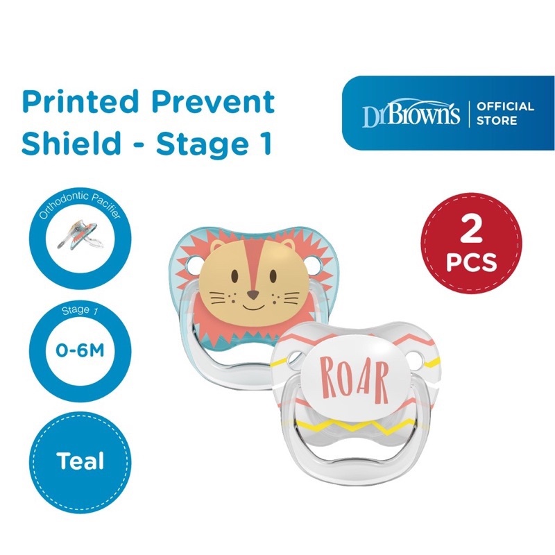 DR BROWNS Prevent PRINTED SHIELD Pacifier-Stage 1 / Stage 2 - Boy/Girl Animal - 2Pack / Empeng bayi