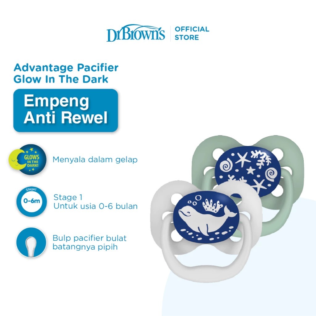 Dr. Brown's Advantage Pacifier Glow In The Dark / Empeng Bayi / Dot Bayi