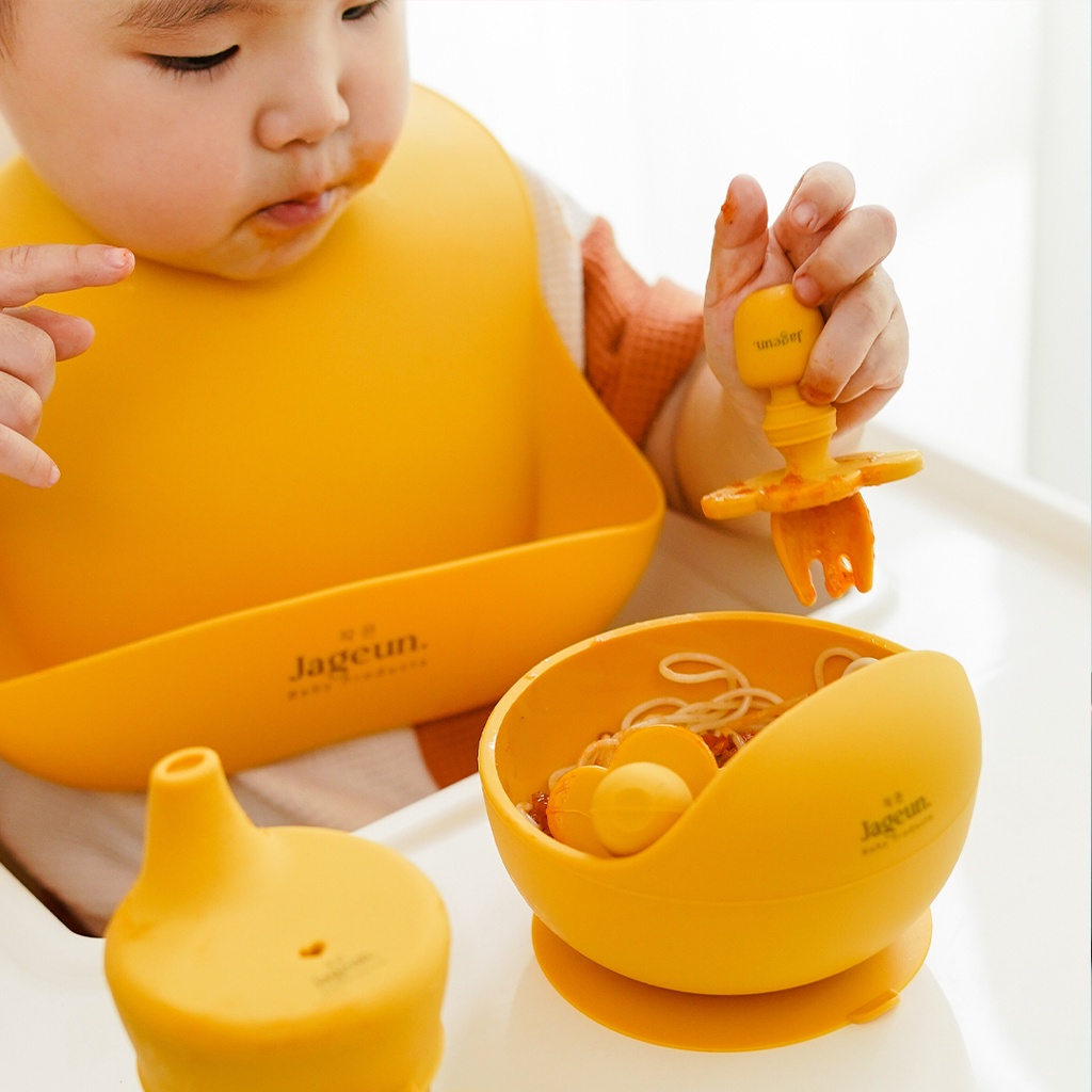 JAGEUN Premium MP-AS set l Silicone Baby Suction Bowl, Silicone Training Spoon & Fork GIFT SET