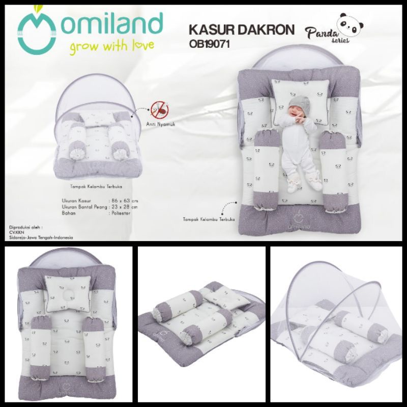 Omiland Kasur Kelambu Bayi Lipat Dakron Set Bantal Peang Guling Seri Sloth Alpaca Rainbow Panda