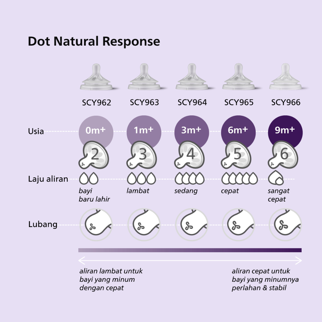 Philips Avent | Dot Bayi Botol Susu | Natural Response | Dot Seperti Payudara Ibu | 3M+ | SCY964/02