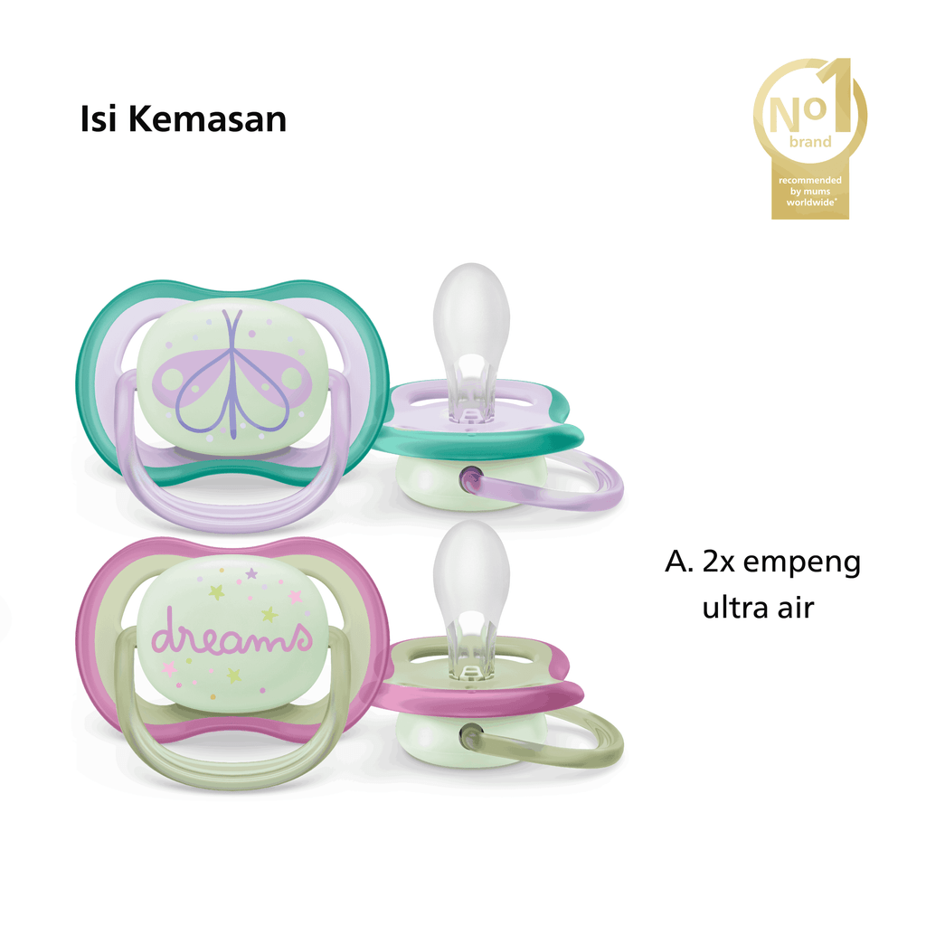 Philips Avent | Empeng Bayi / Soother Bayi | Ultra Air Glow In The Dark | Empeng dengan Ekstra Ventilasi | Character | 0-6M | SCF376/19