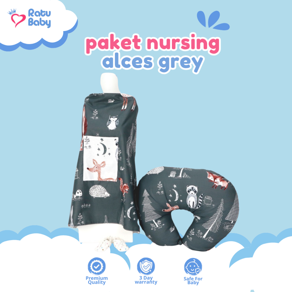 Ratu Baby l Paket Bundel Apron Menyusui Dan Bantal Menyusui Kain Katun CVC l Nursing package