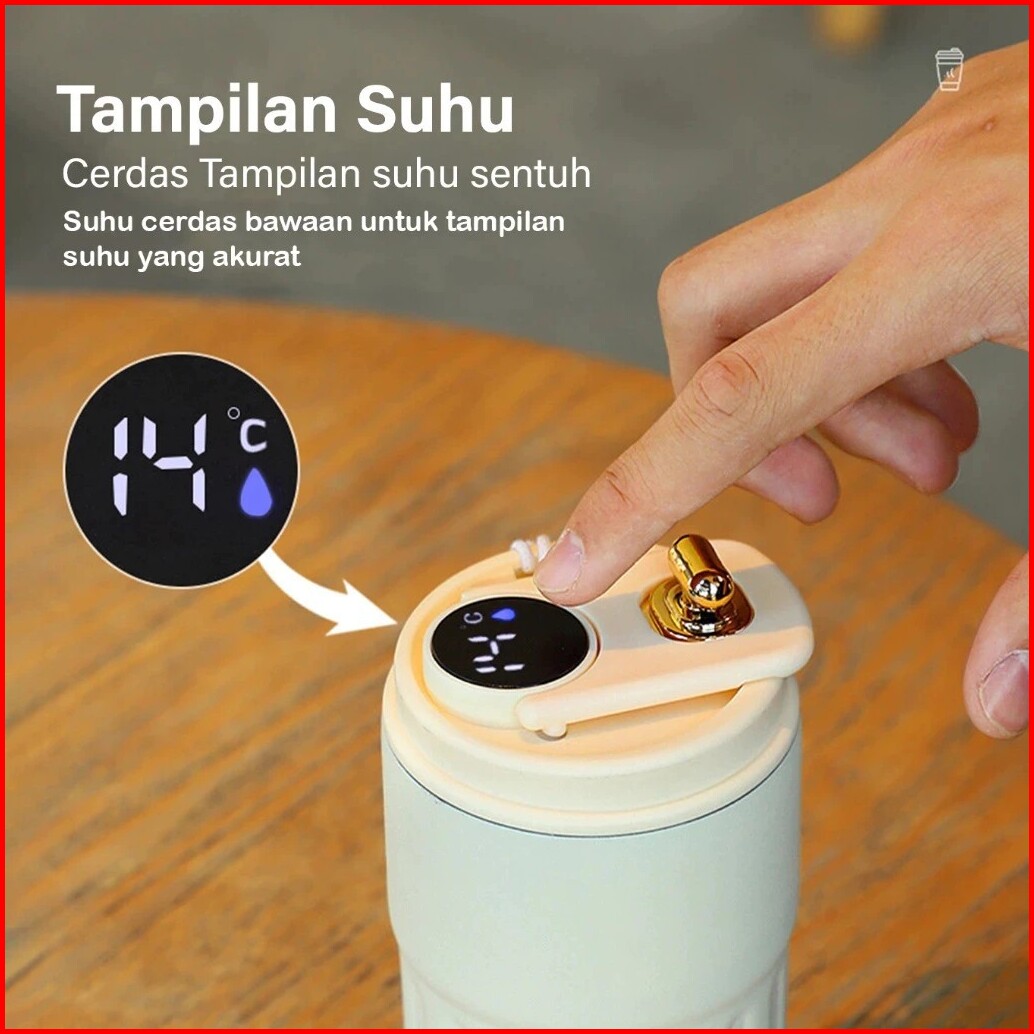 Cuculemon Termos Kopi Digital Led Tumbler Kopi Aesthetic Bottle Minum Air Panas Stainless 450ml Mug
