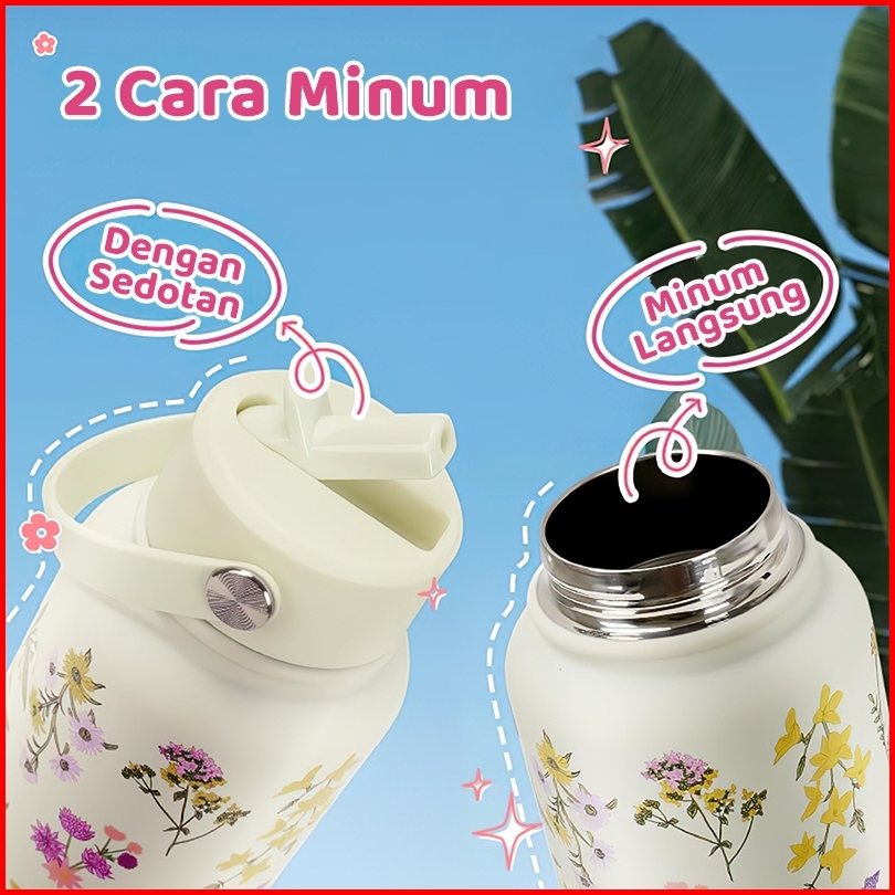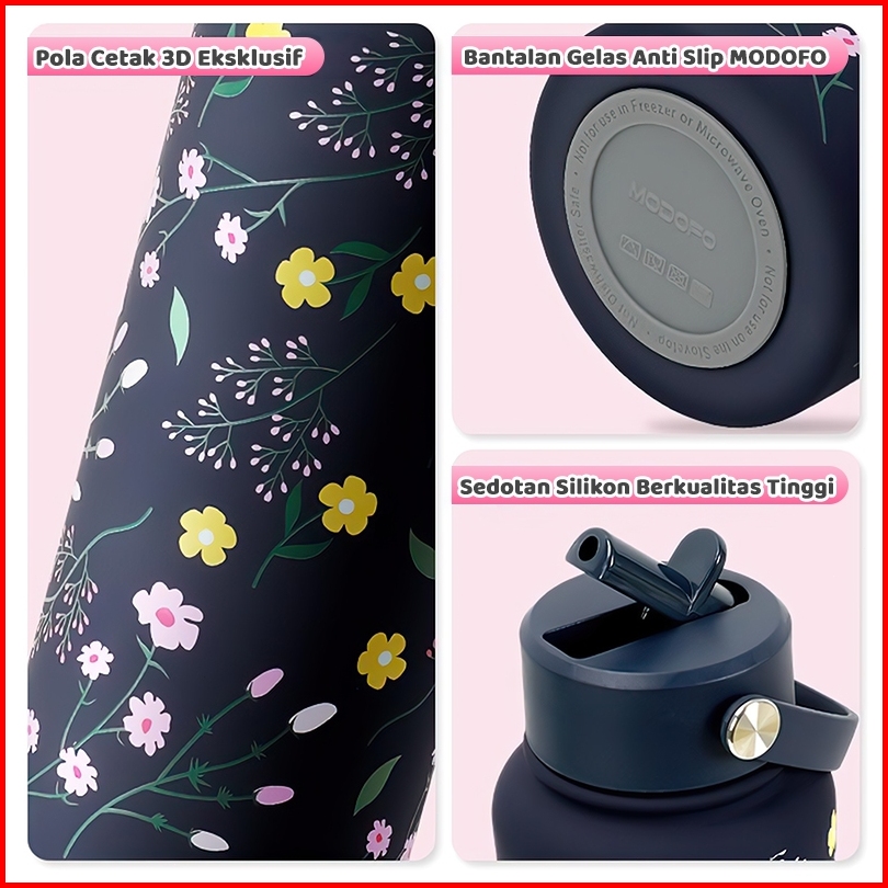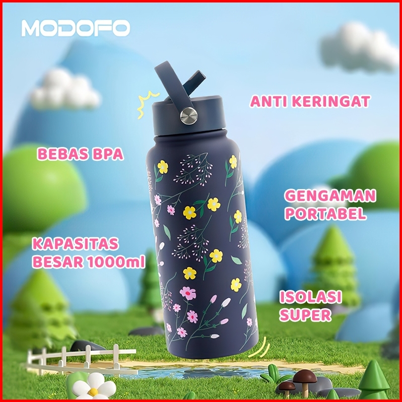 -20rb No Min Modofo 1000ml Sedotan Tumbler Unik Stainless Kualitas Premium - Tahan Suhu 24jam Motif Aesthetic