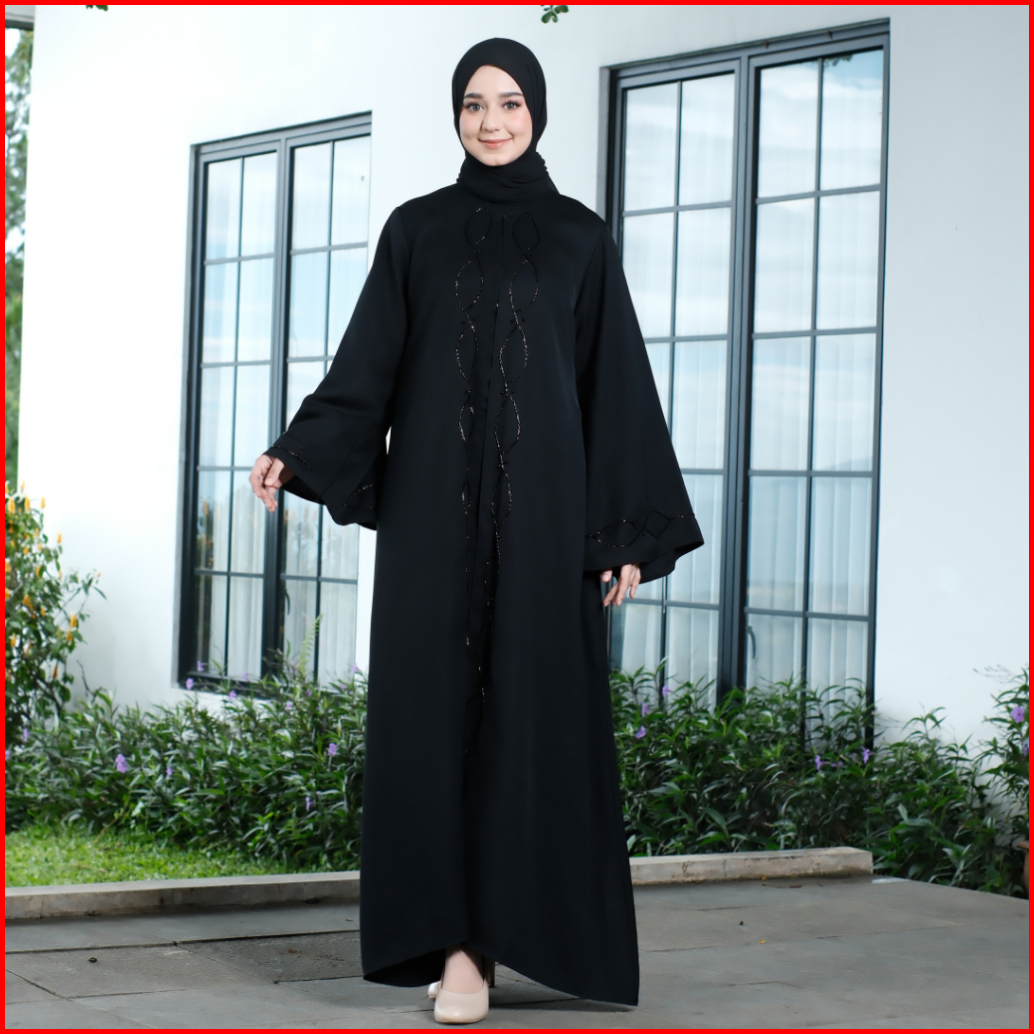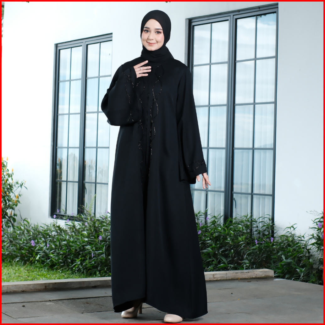 Gamis Abaya Hitam Mewah Elegan Terbaru 2025 Lebaran Wanita Premium
