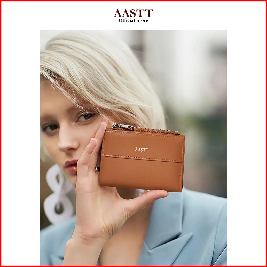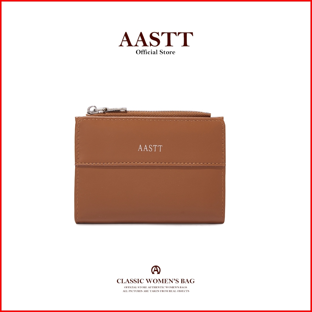 Aastt Tas Dompet Wanita Koin Dompet Kartu Dompet Lipat Ritsleting Kulit Pu Tiga Kali Lipat Hitam Cokelat Off-white A0030