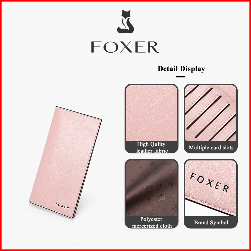 Foxer Dompet Panjang Wanita Dompet Kulit Sapi Wanita Untuk Koin Dompet Panjang Ultra Tipis Dengan Banyak Slot Kartu