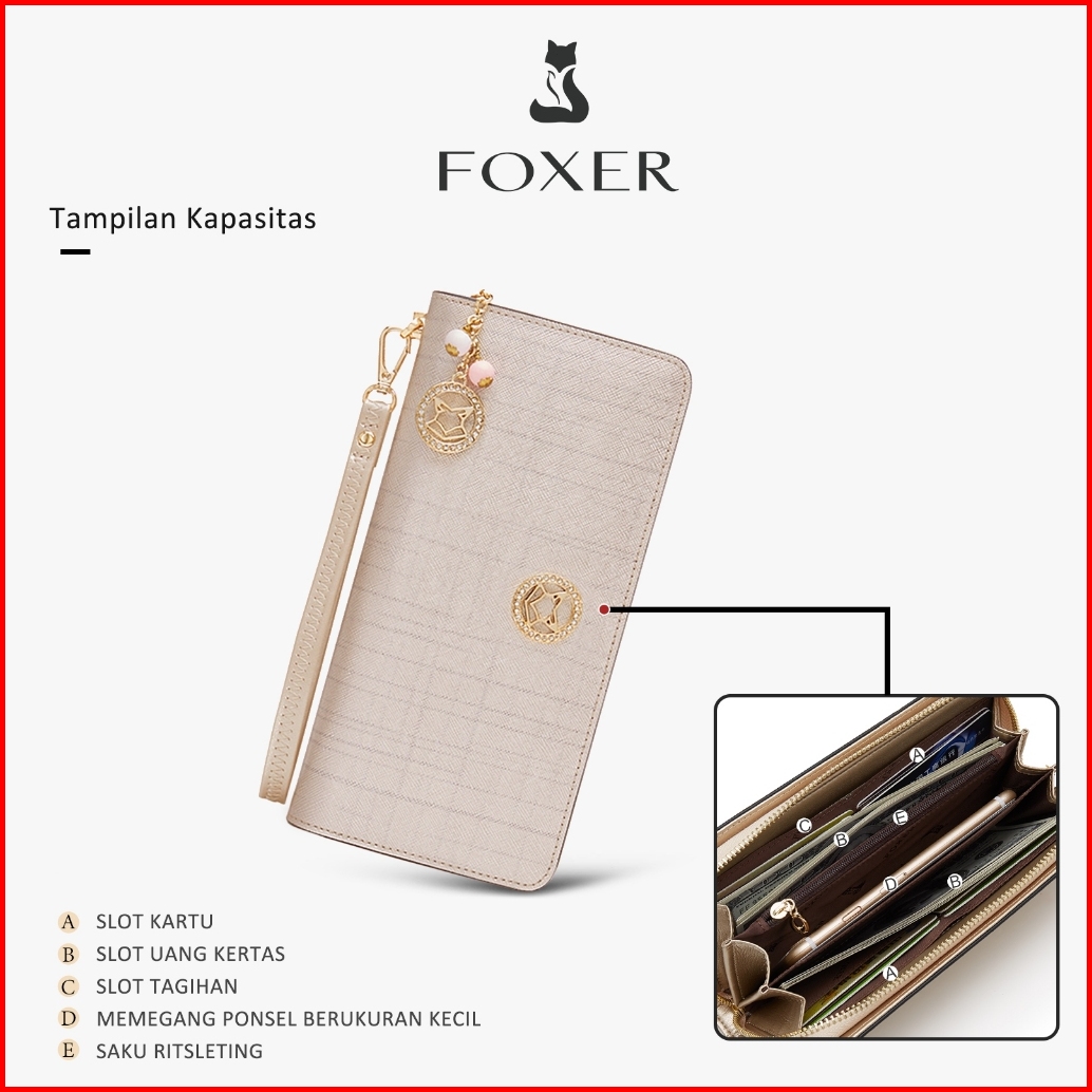 Foxer Dompet Panjang Dompet Kulit Ritsleting Tempat Kartu Kredit Desain Sederhana Dompet