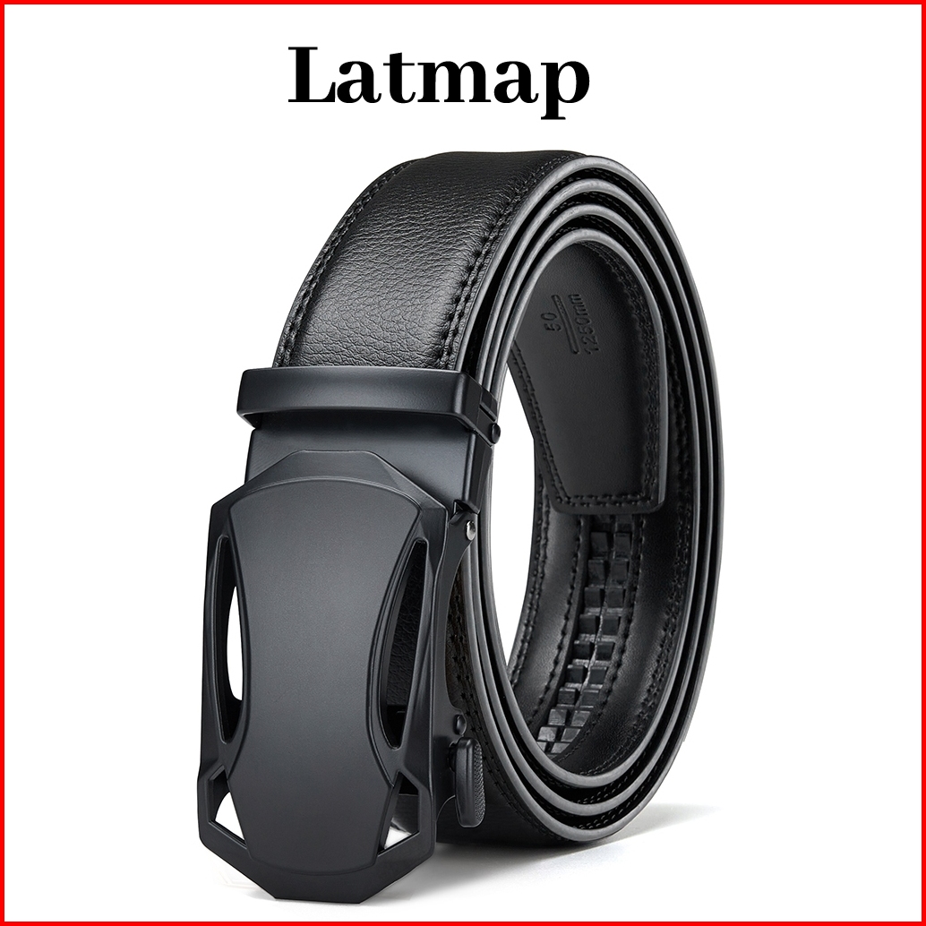Latmap Sabuk Pinggang Pria Adjustable Ikat Pinggang Kulit Sapi Asli Model Rel Gesper Otomatis Belt Pria P009