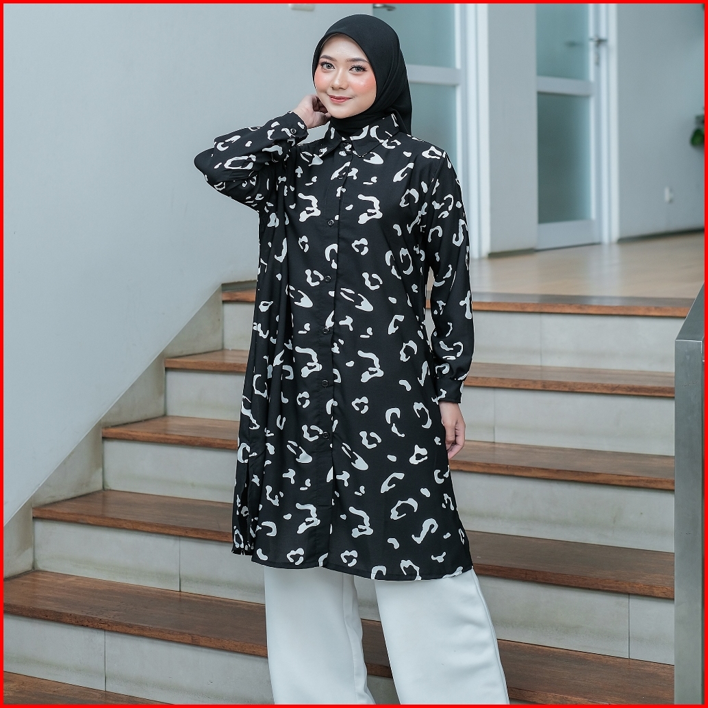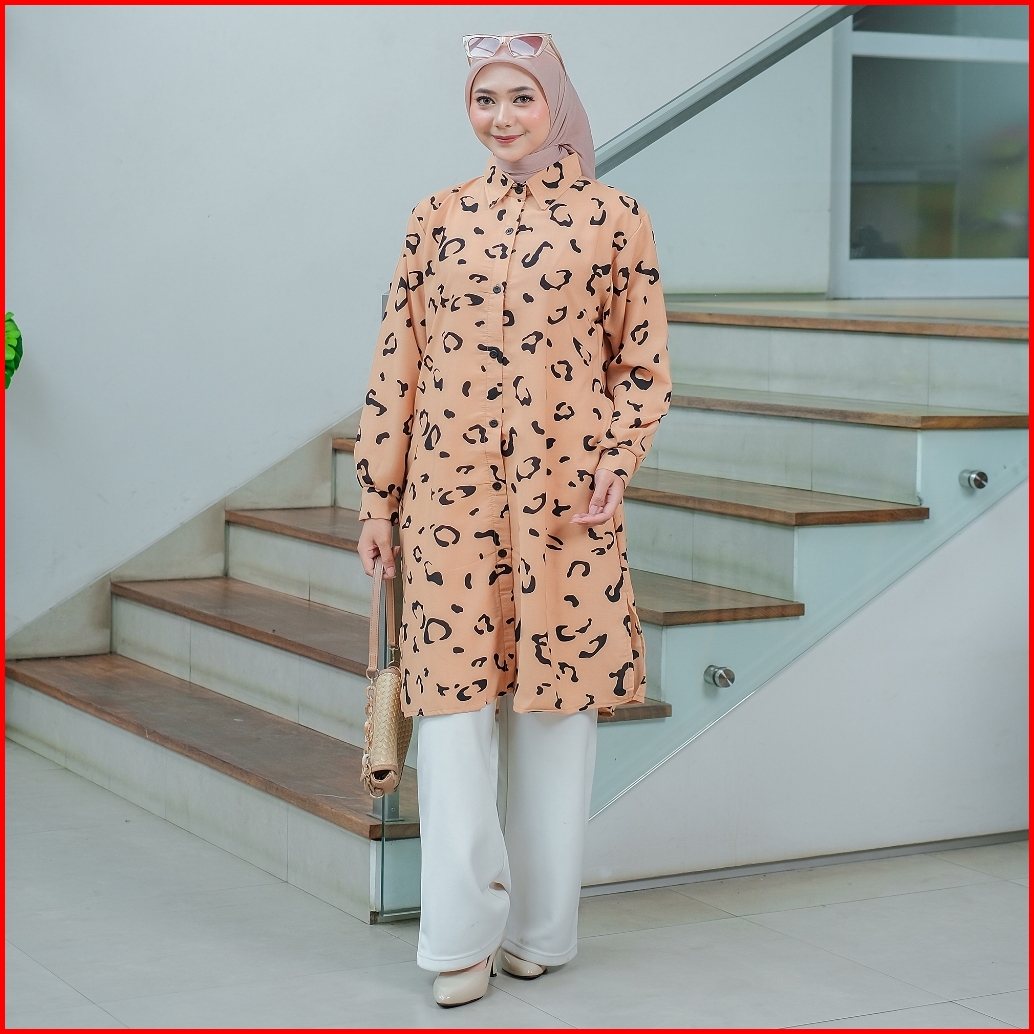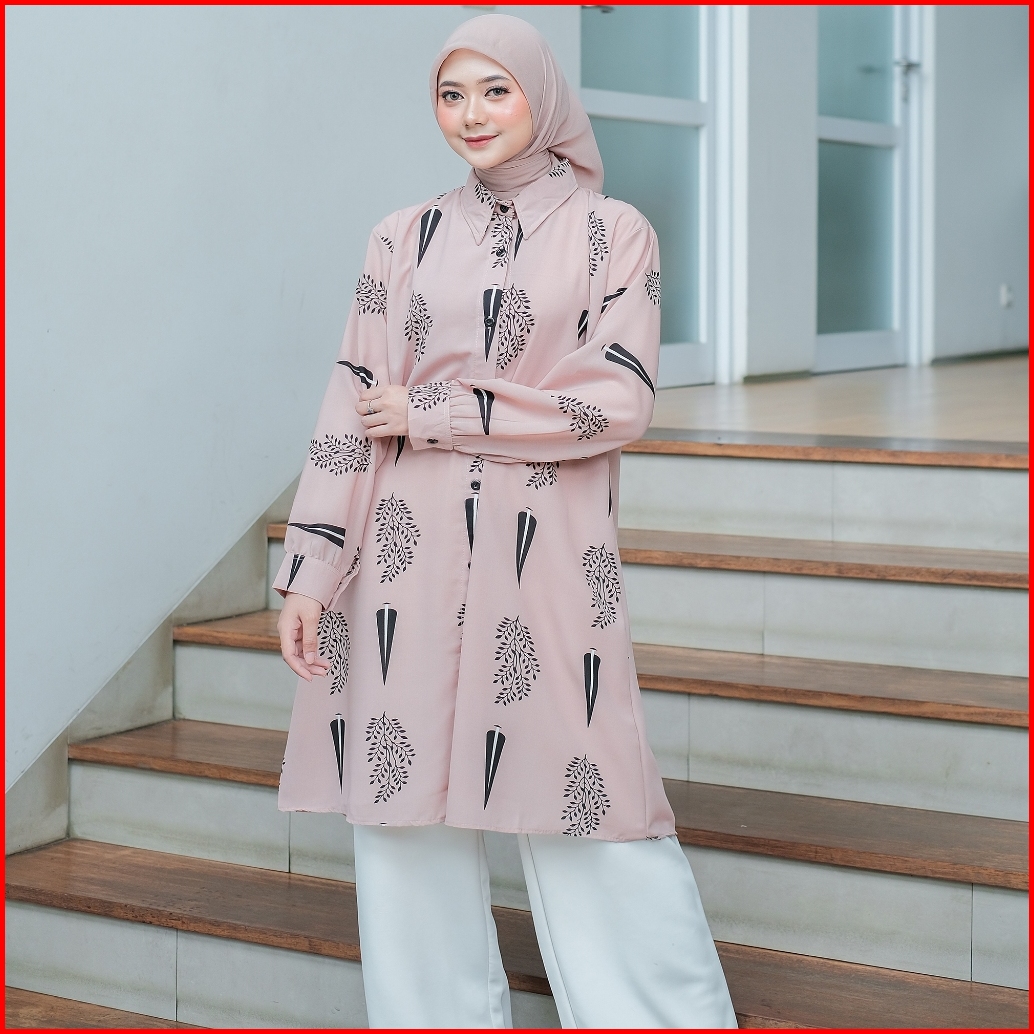 Tunik Muslimah Monalisa Motif Tropis Elegan Baju Atasan Wanita Kancing Depan Busui Friendly