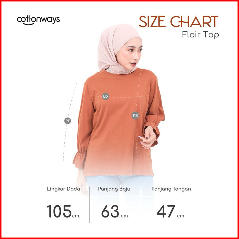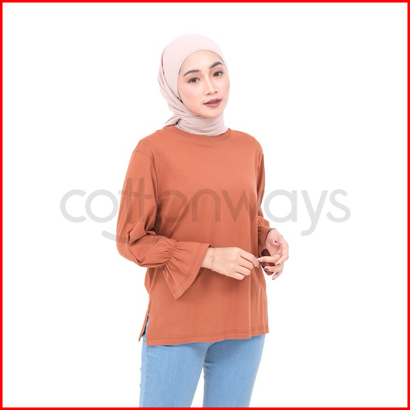 Cottonways Flair Top Blouse Kaos Tangan Ruffle Bahan Cotton Combed 24s Atasan Untuk Petite Size