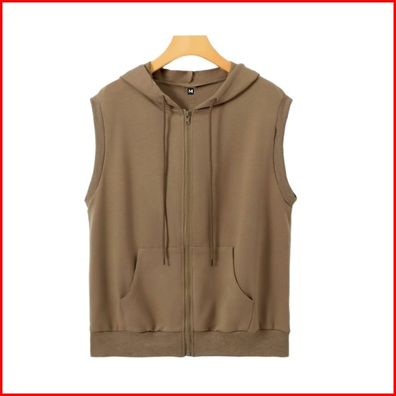 Rompi Hoodie Zipper Pria Rompi Wanita Kekinian Warna Moccha