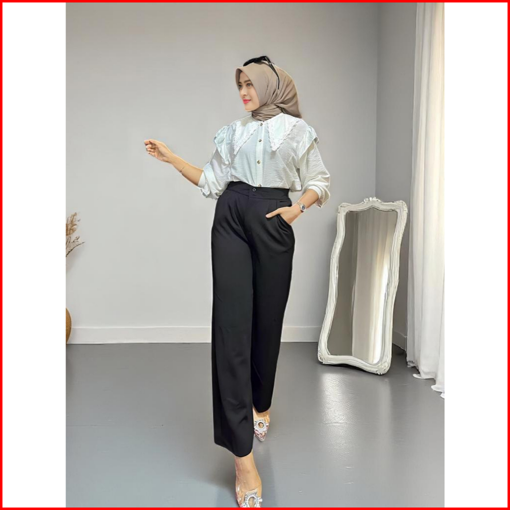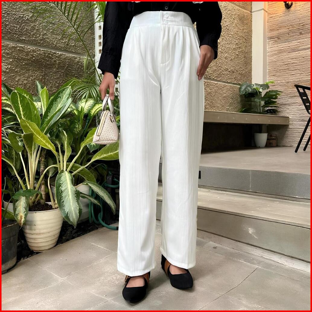 Gazi Factory - Jennie Knit Pants Celana Kulot Higwaist Knit Kancing Pants Cullote Wanita Kekinian