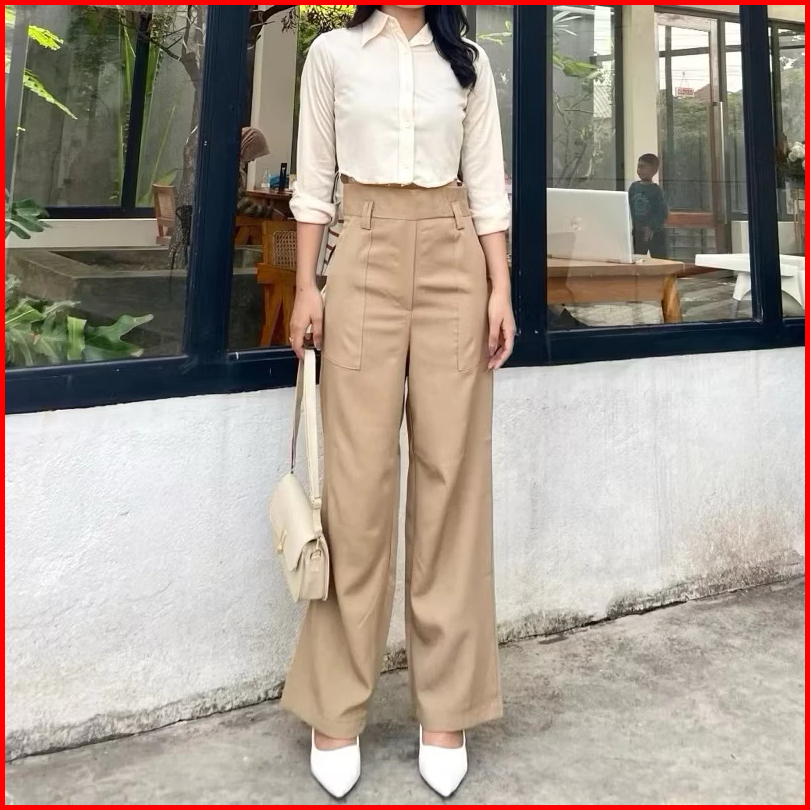 Diora Highwaist Pants Kulot Straight Cut Pants Wanita