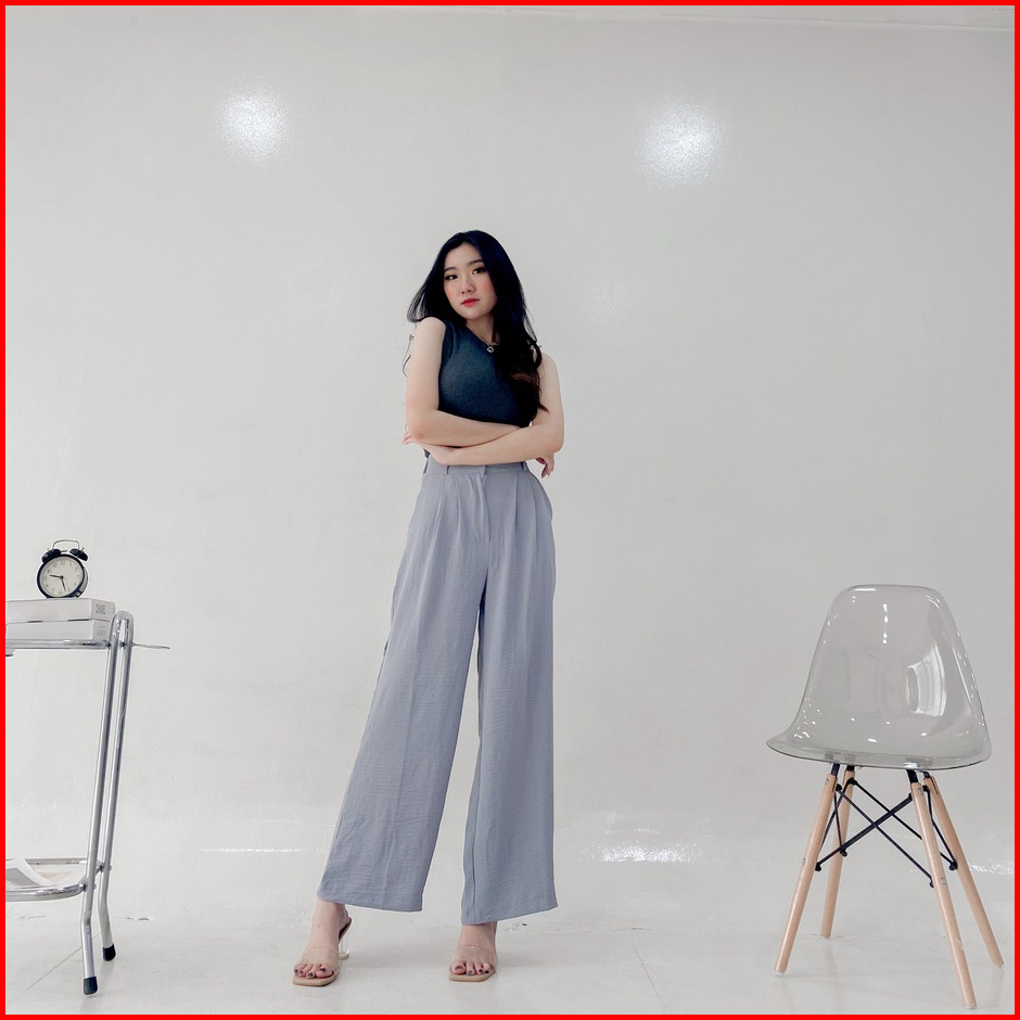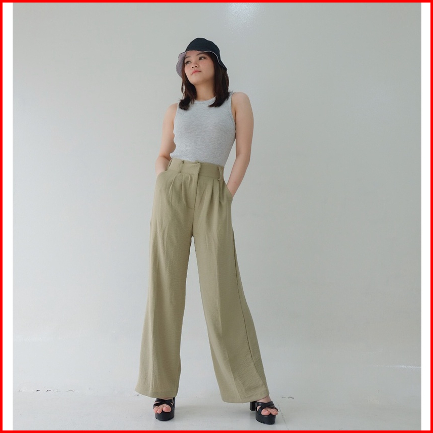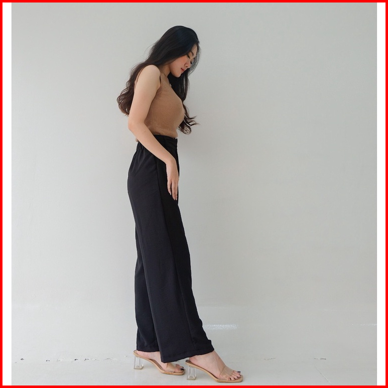 Celana Kulot Crinkle Flowy Jatuh Premium Highwaist Wanita Loose Cullote Pants 3412