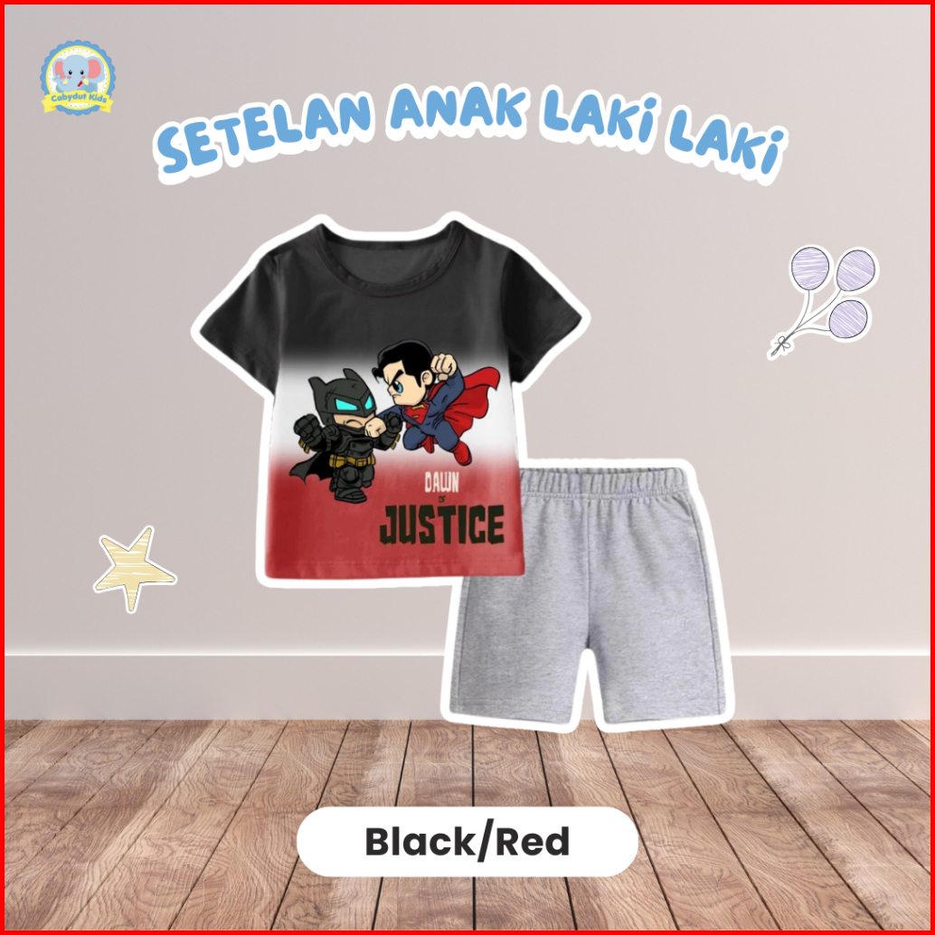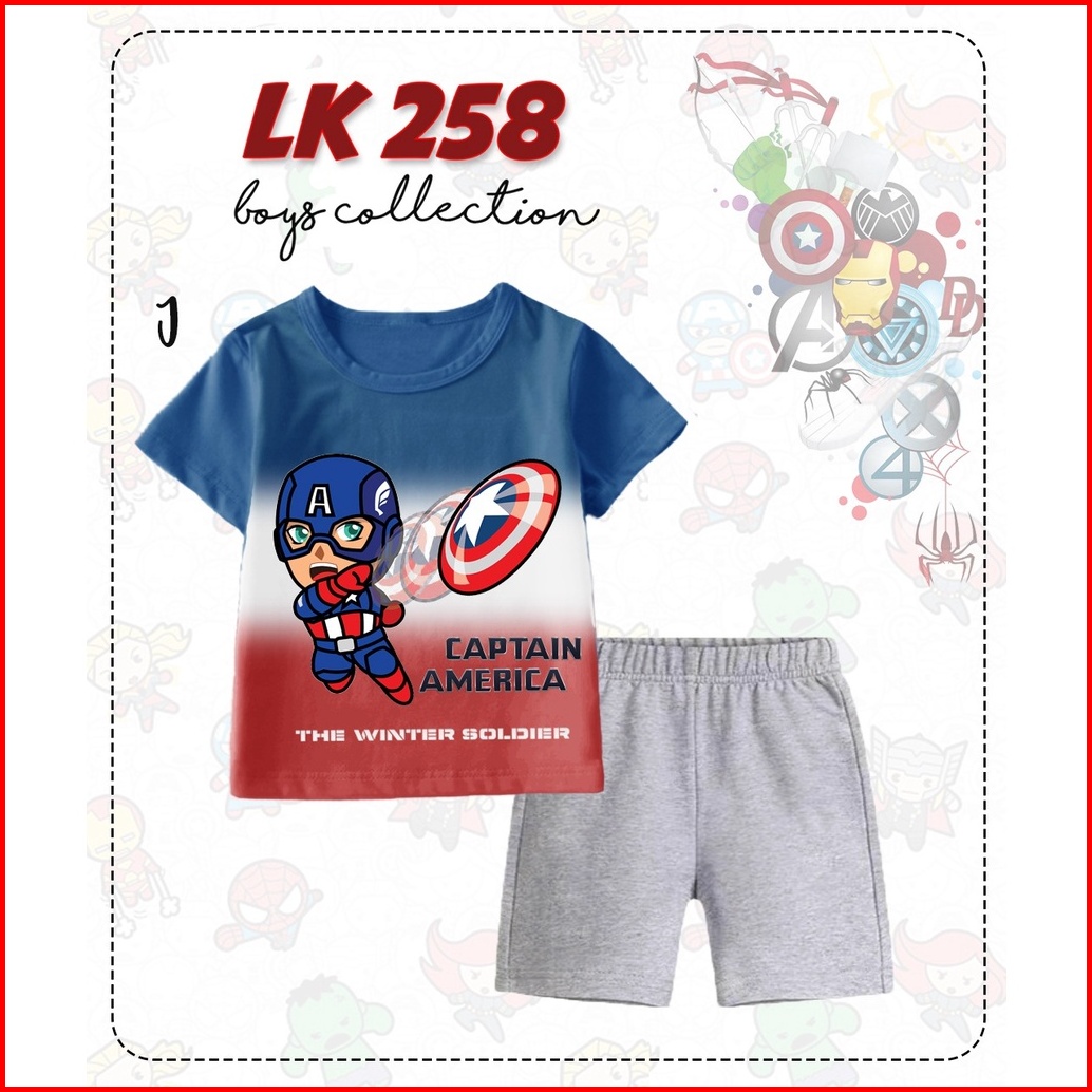 Cabydut Setelan Kaos Anak Laki Laki Lengan Pendek Karakter Super Heroes