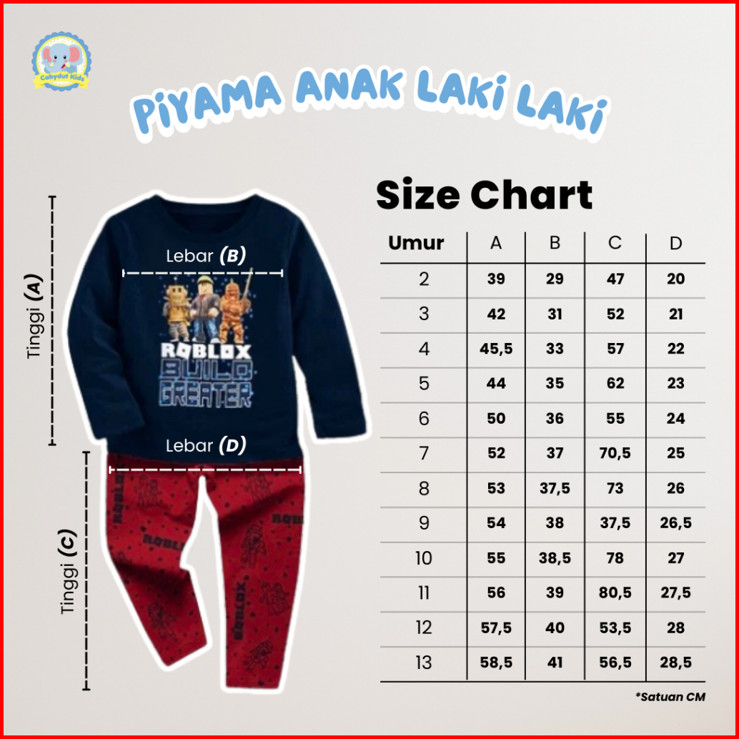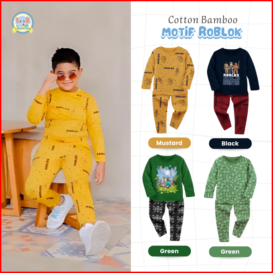 Cabydut Baju Tidur Anak Laki Laki Piyama Lengan Panjang Roblok