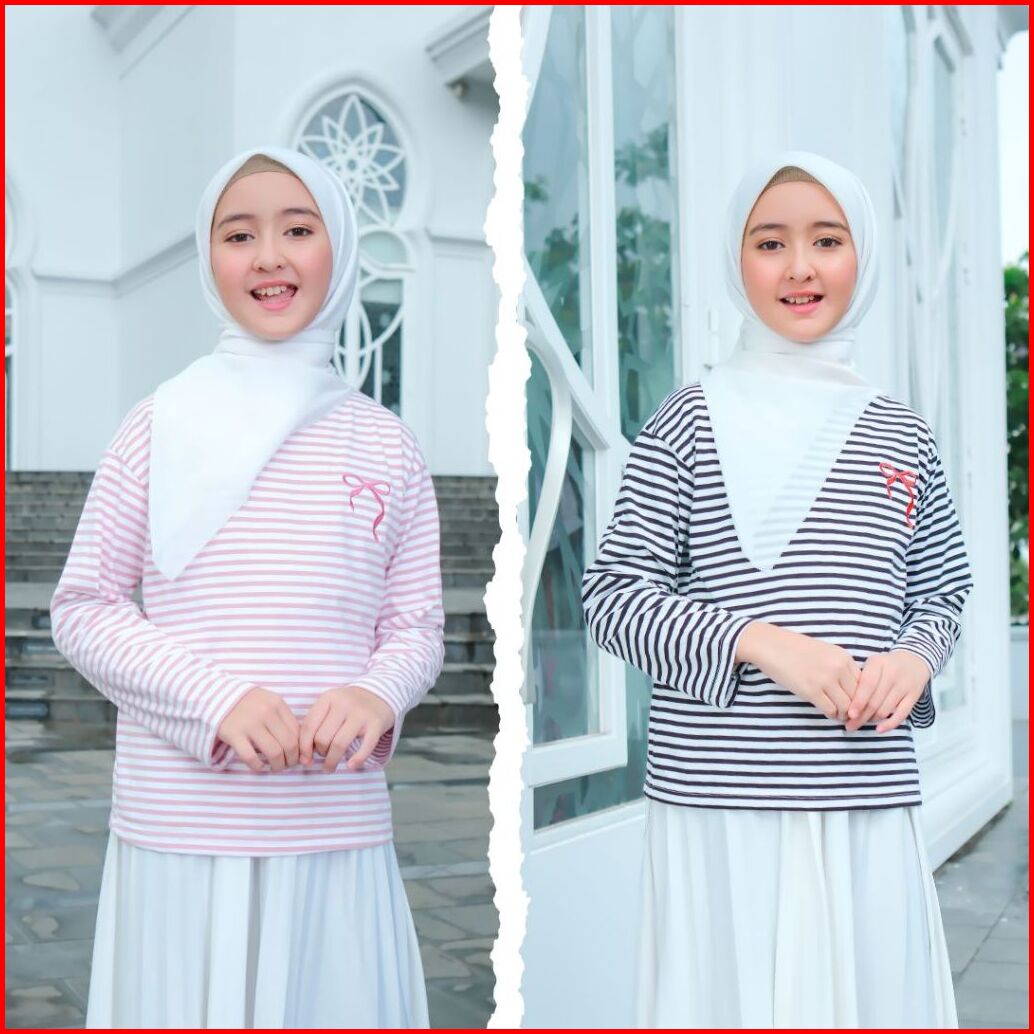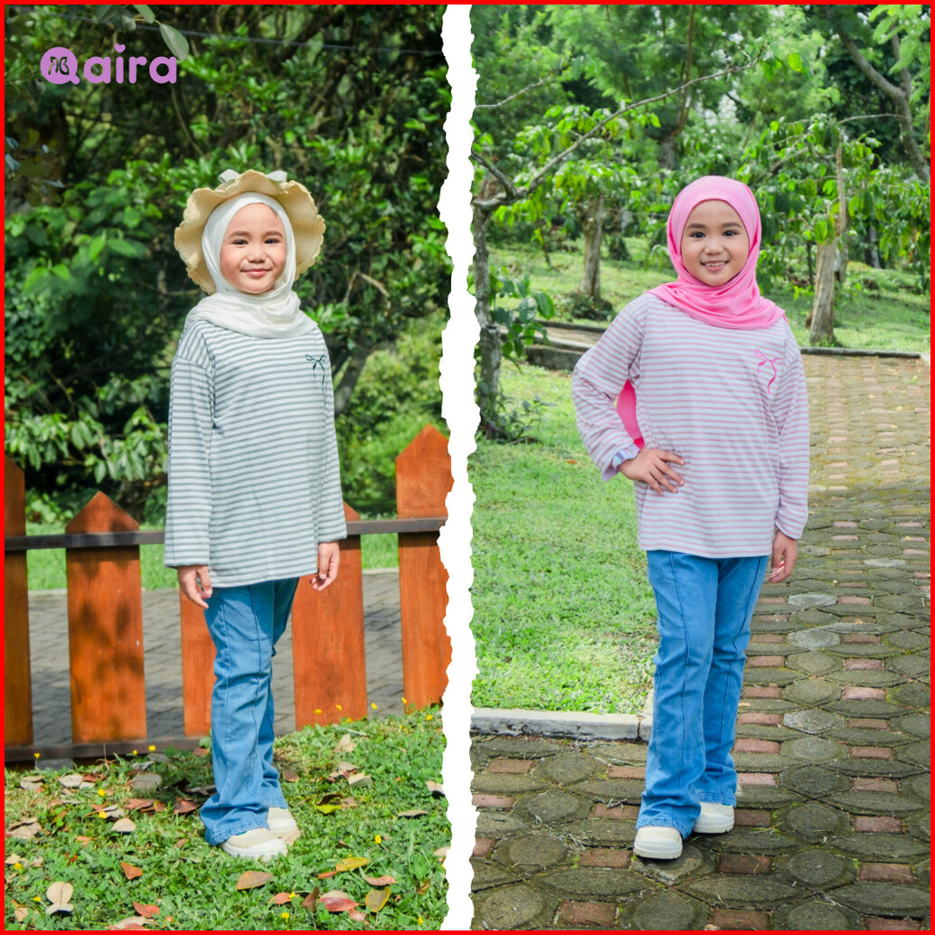 Qaira Kaos Anak Perempuan Lengan Panjang Stripe Salur Pitara Series