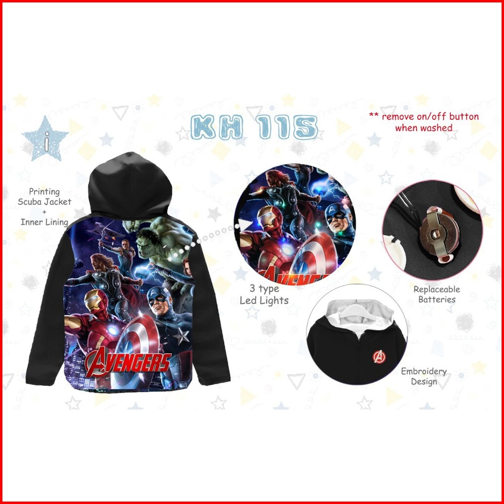 Cabydut Jaket Anak Laki Laki Motif Karakter Superhero Led Light