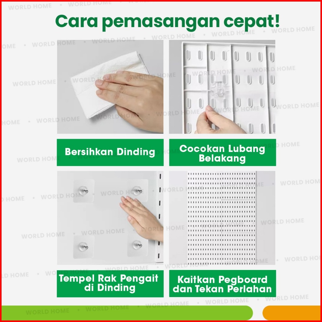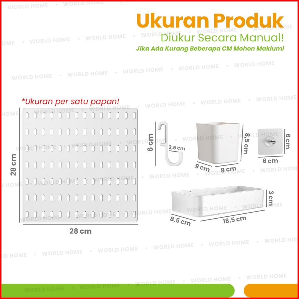 World Home Pegboard Rak Dinding Wall Shelf Home Decor Aksesoris Dekorasi Rak Dinding Tanpa Paku