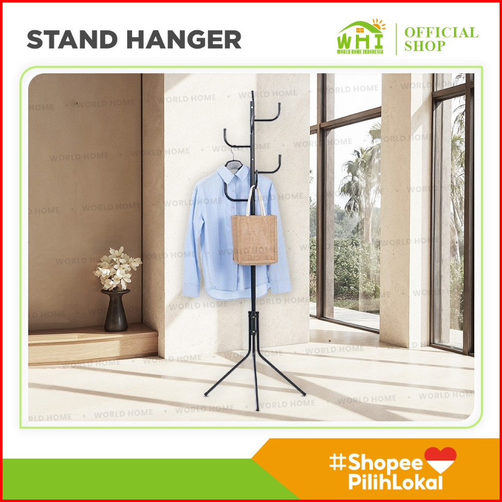World Home Stand Hanger Multifungsi Besi Gantungan Baju Jaket Tas Rak Gantung Berdiri Minimalis Kokoh