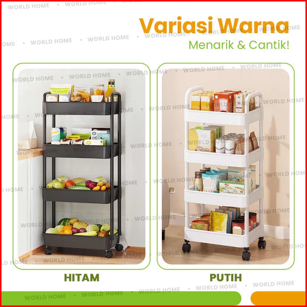 World Home Rak Dapur Serbaguna Rak Troli 3 4 Susun Rak Kamar Mandi Rak Susun Plastik Dengan Roda