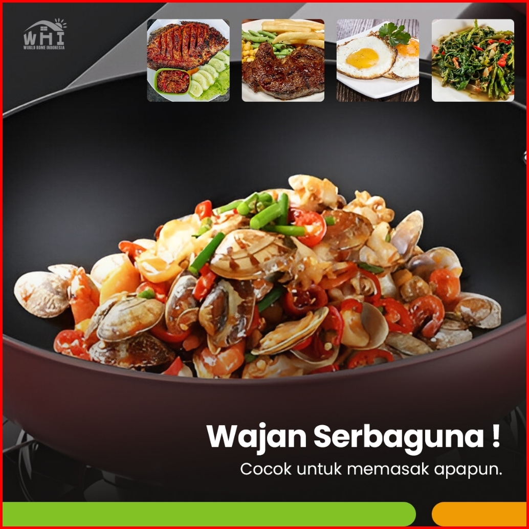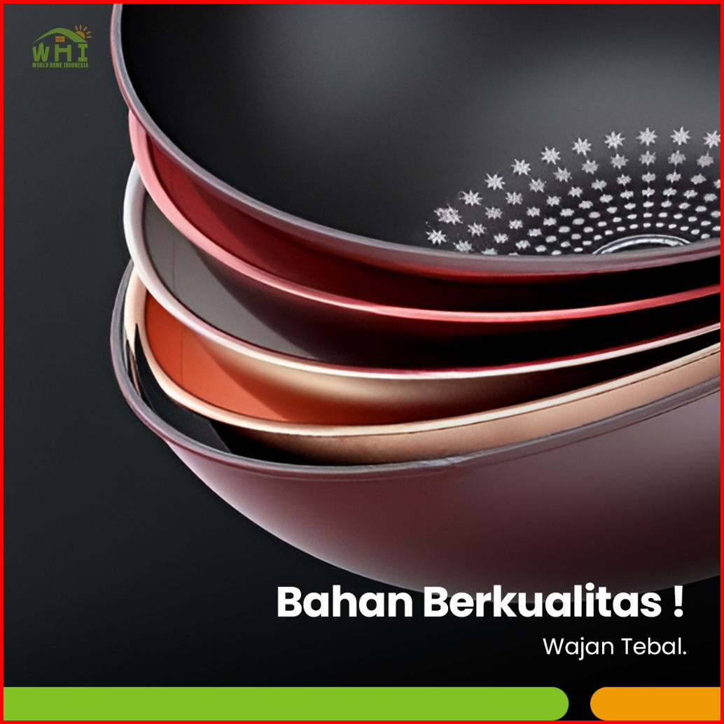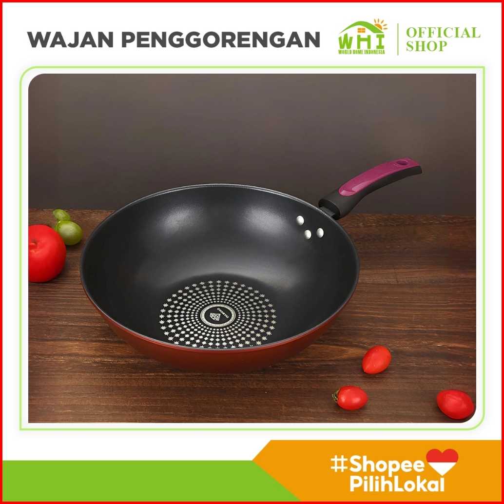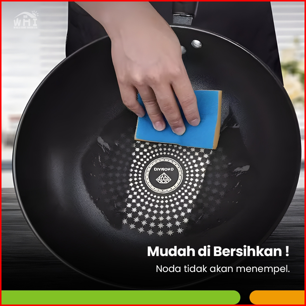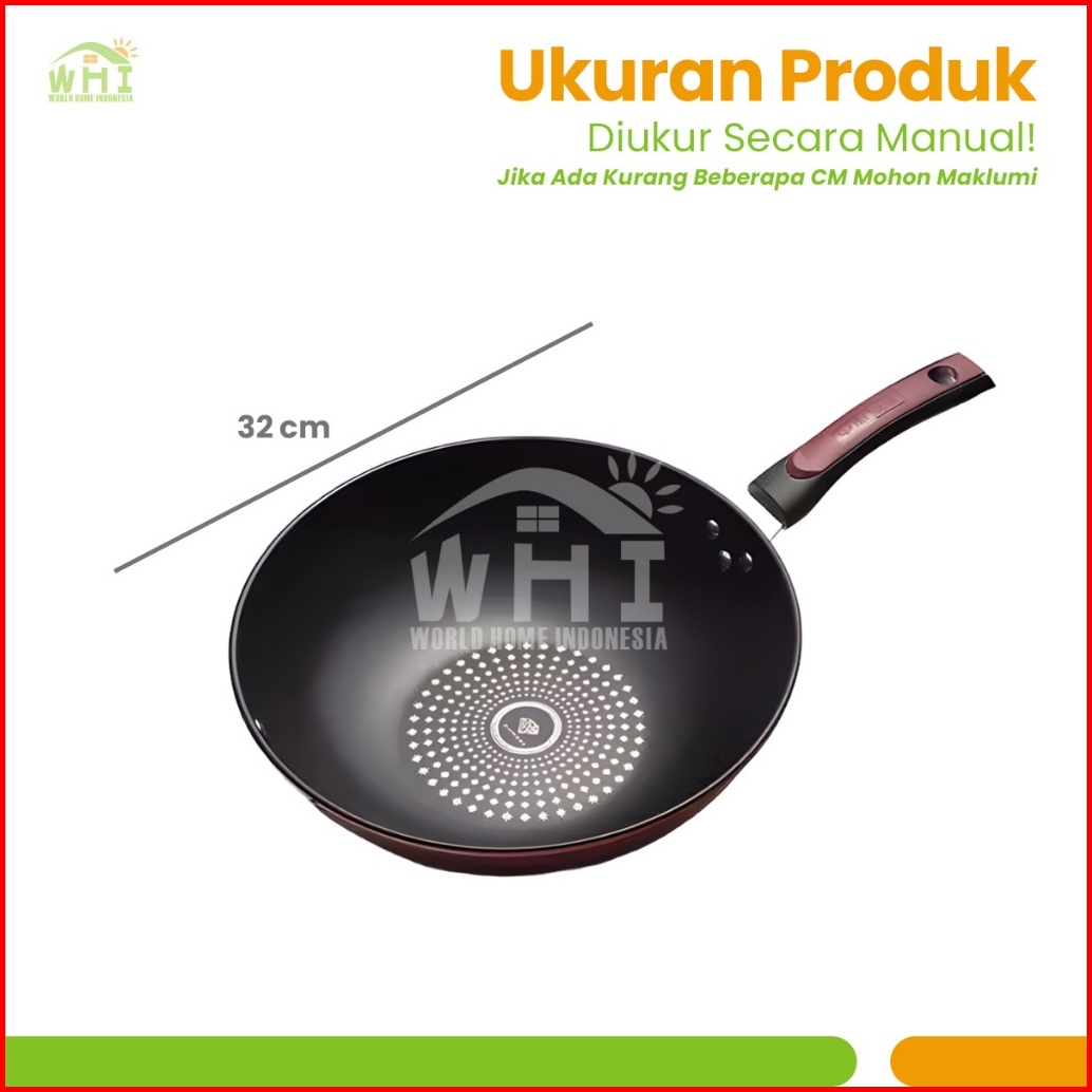 World Home Wajan Diamond Coating 32 Cm Model Wajan Gagang Anti Lengket Wok Pan Penggorengan