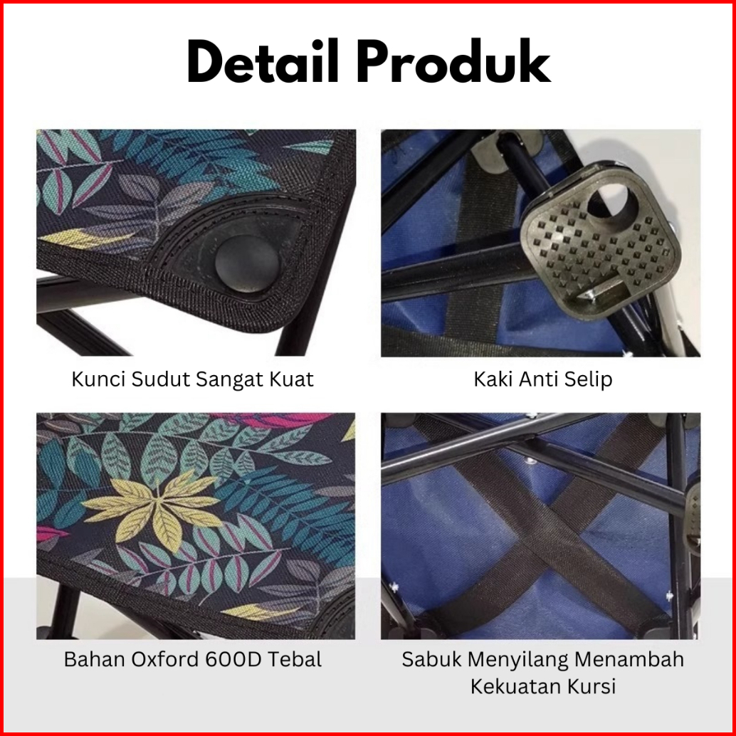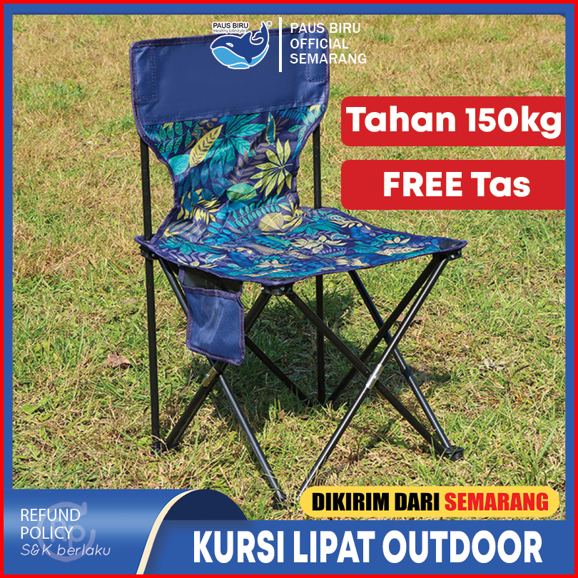 Kursi Lipat Outdoor Sandaran Dengan Sandaran Free Tas Kursi Camping Kuat Lebar Tebal Beban 150kg Kursi Gunung Portable -