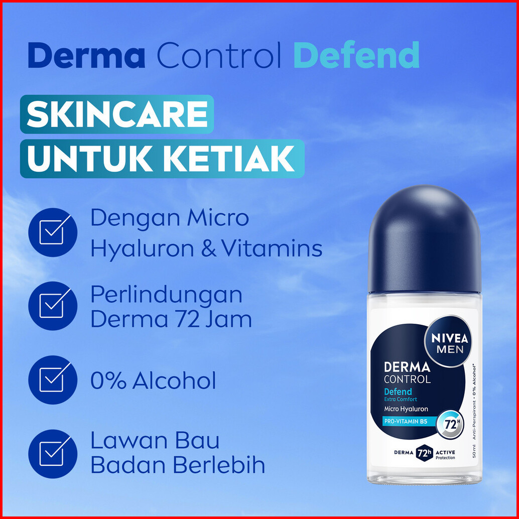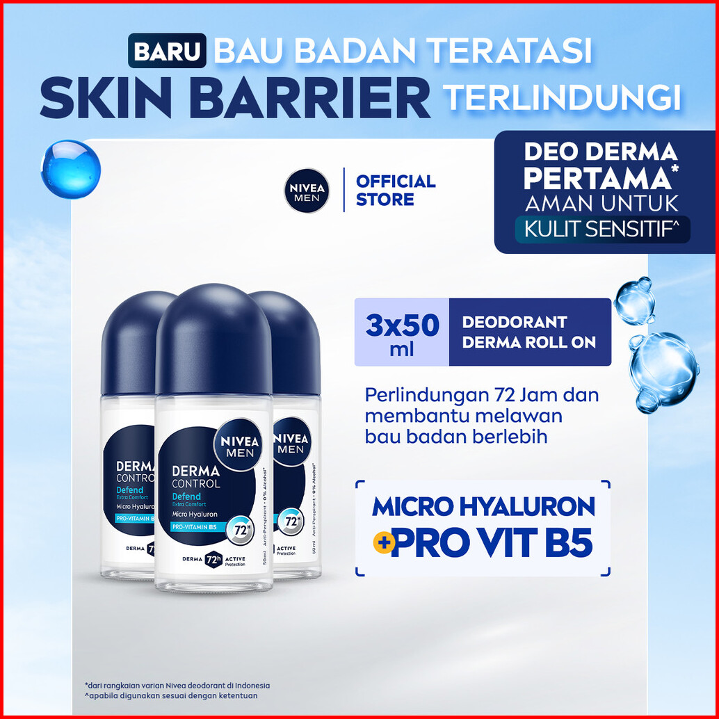 Nivea Men Deodorant Roll On Derma Control Defend 50ml X3 - Perlindungan 72 Jam Menenangkan Kulit Merawat Skin Barrier Ti