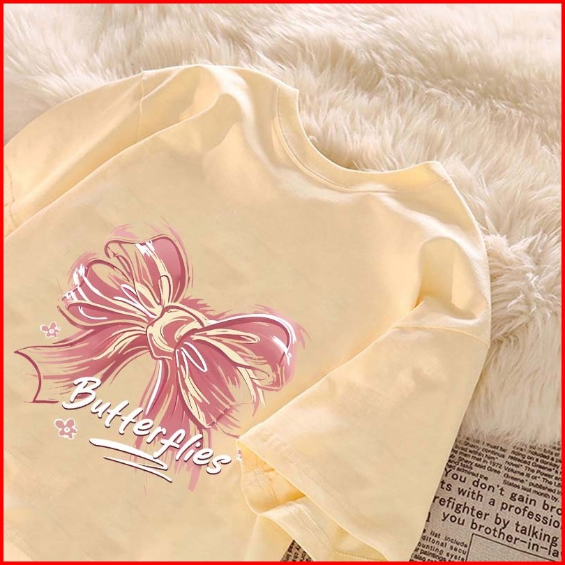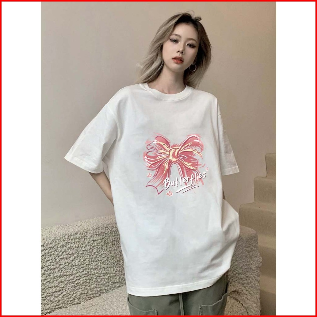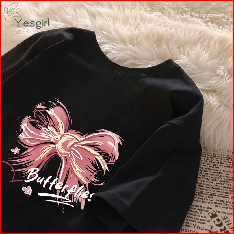 Yesgirl Kaos Bergambar Pita Merah Muda Yang Lucu Dan Asyik Fashion Korean Style Baju Kaos Oversize Kaos Hitam Wanita Baj